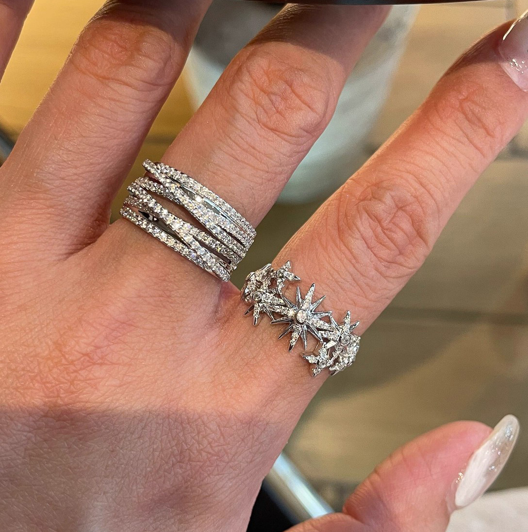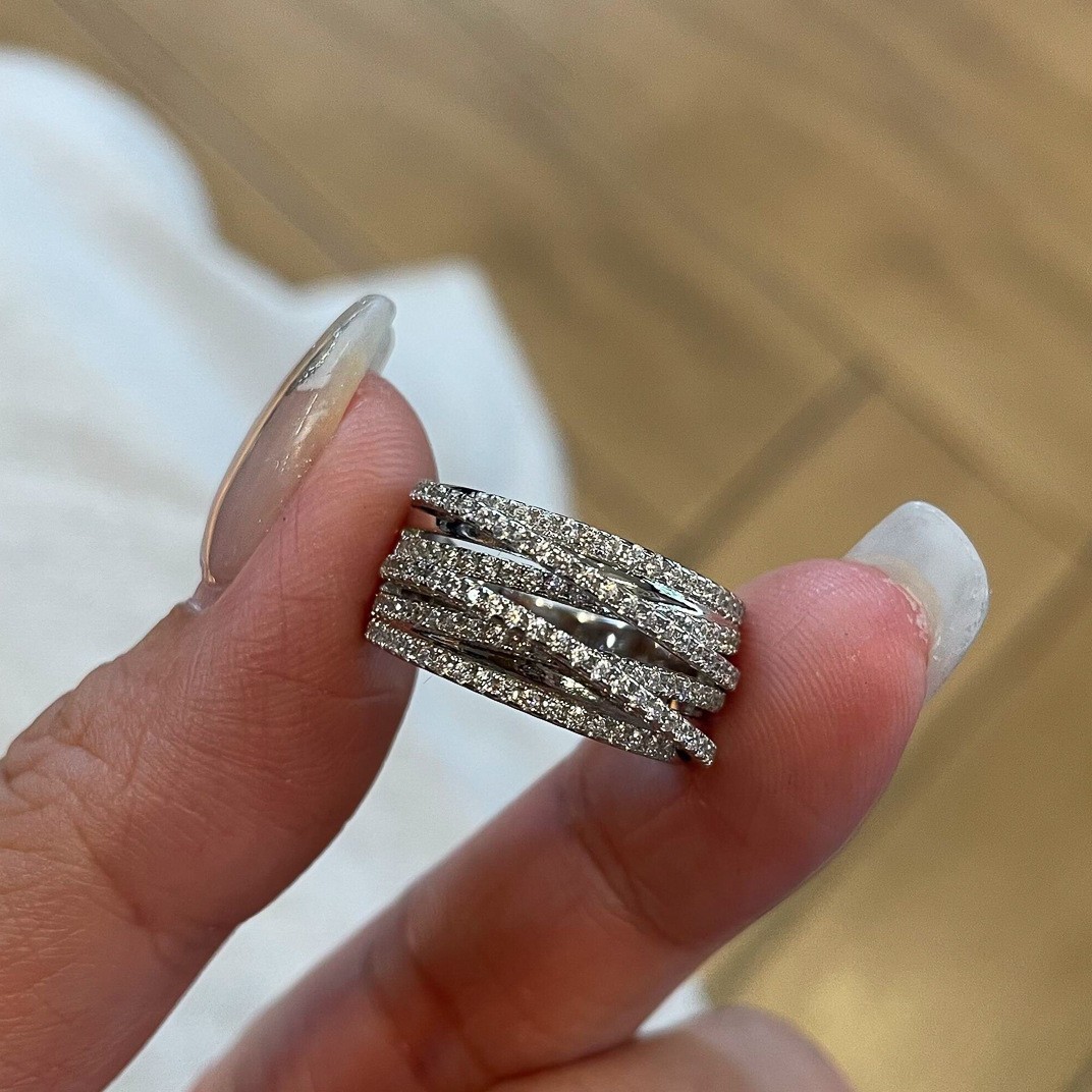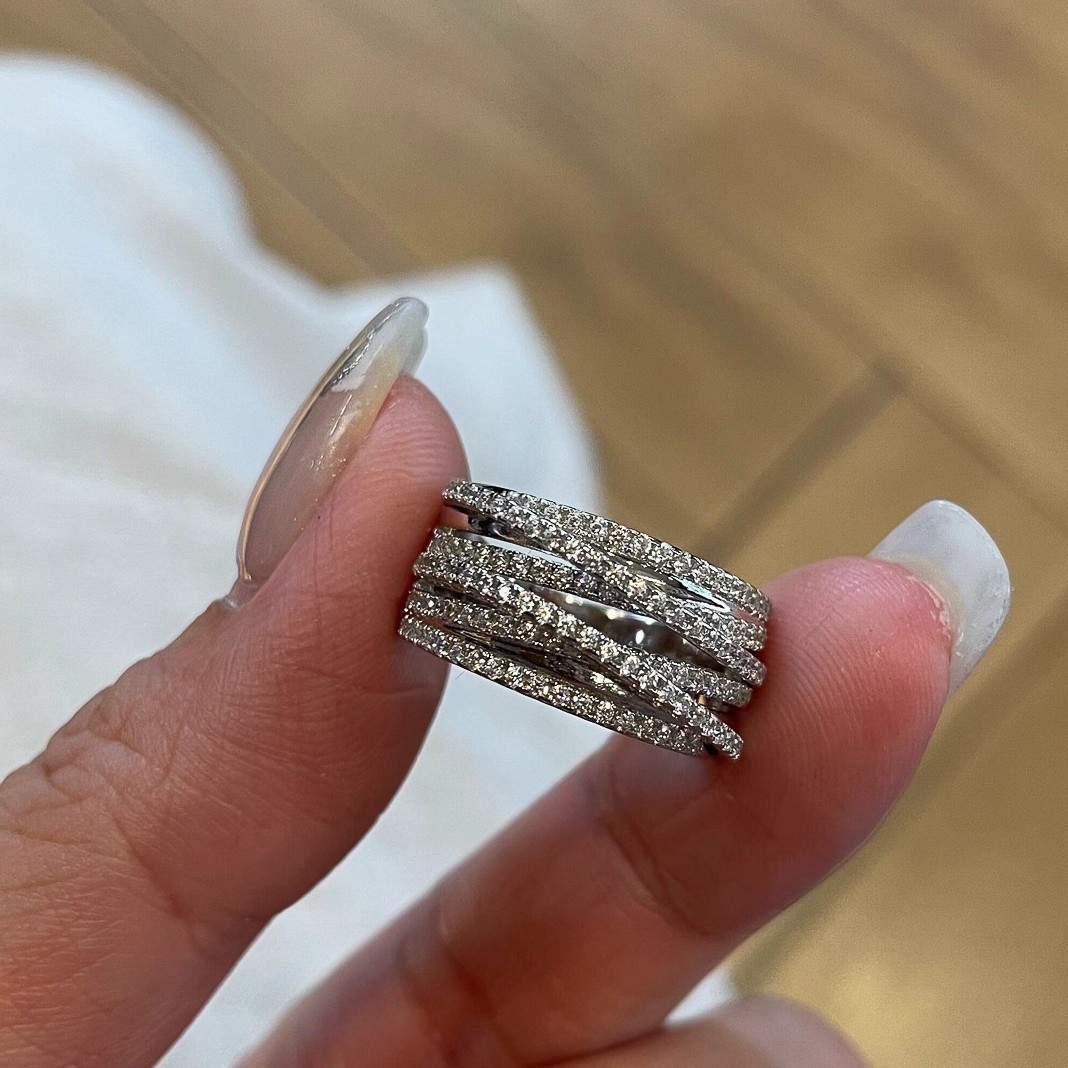 小红书同款老钱风方钻排钻戒指高级感百搭戒指爆闪女戒指