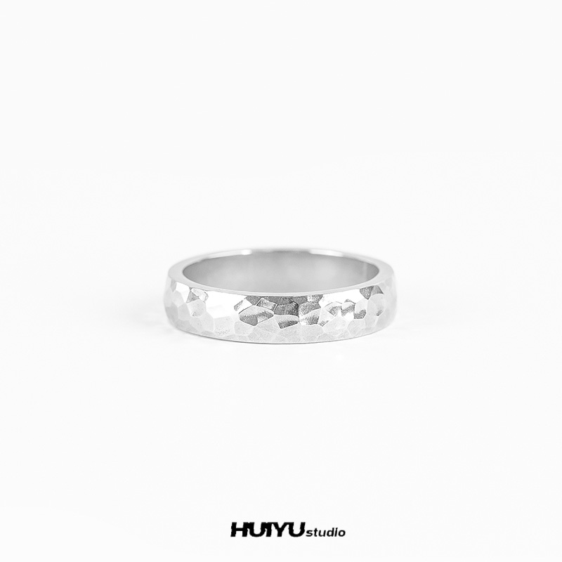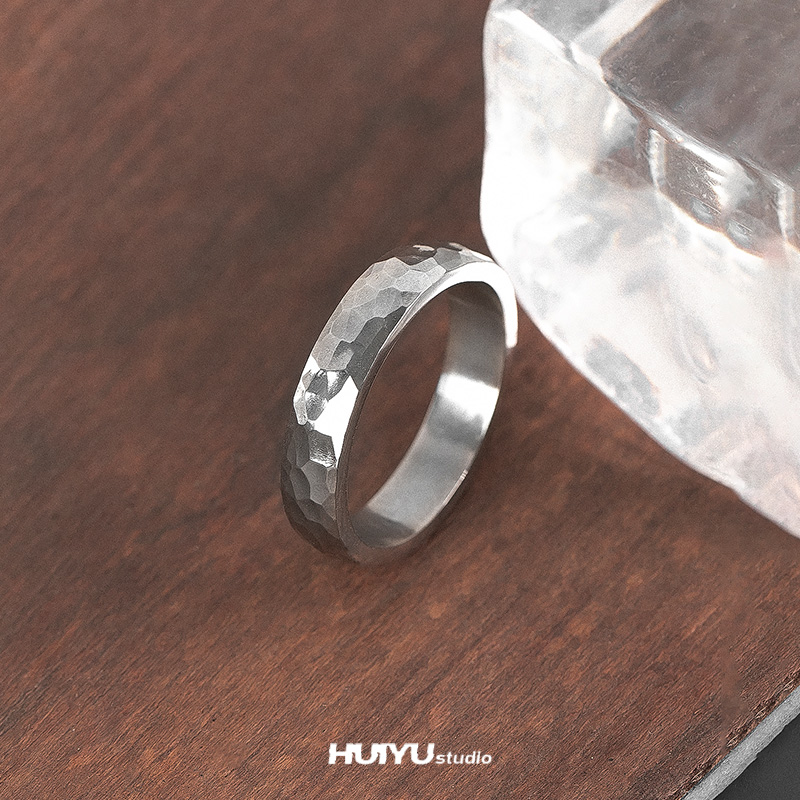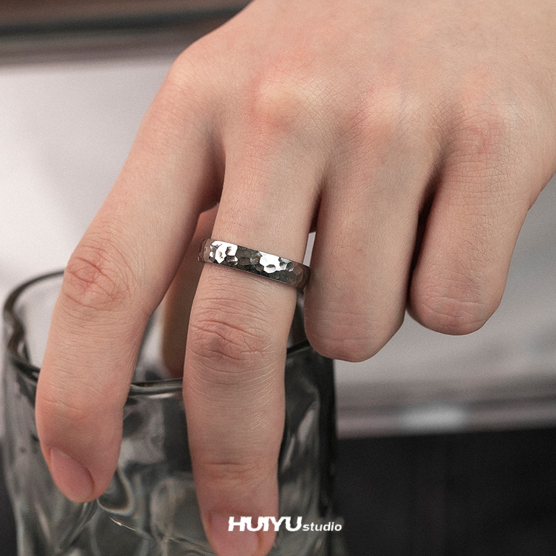 钛钢复古风手工锤纹重工宽面大气食指银戒指光面气质指环男友礼物