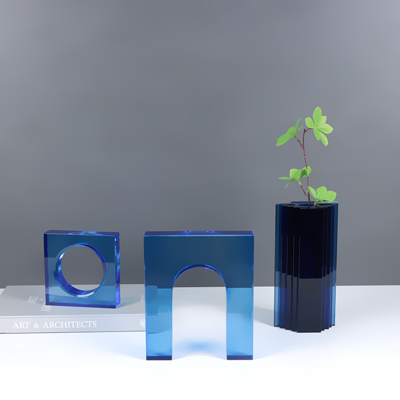 蓝色拱门几何透明摆件现代简约花器艺术品客厅卧室书房桌面装饰品