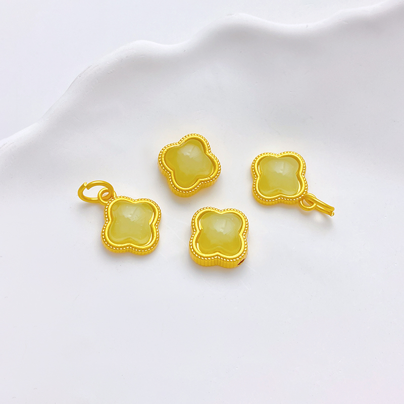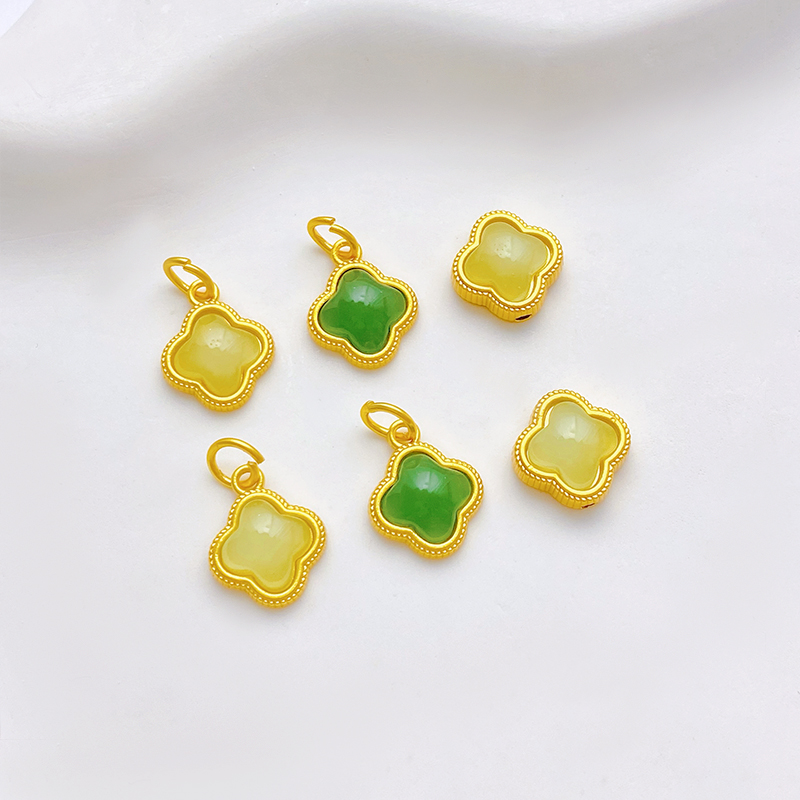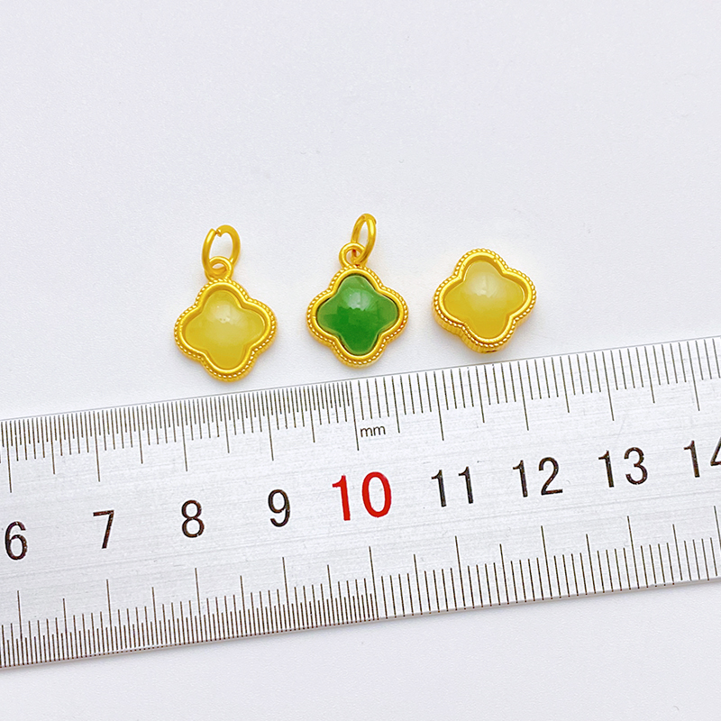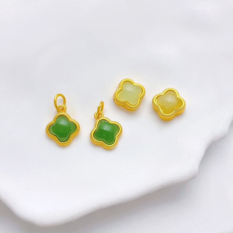 古法金保色仿玉四叶草吊坠手工diy编绳手串手链项链饰品材料挂件