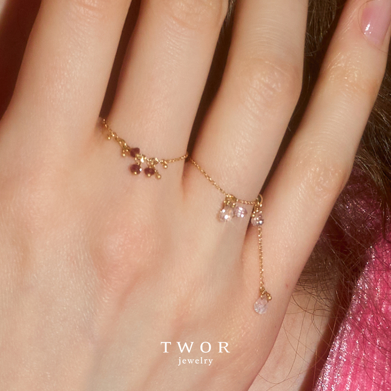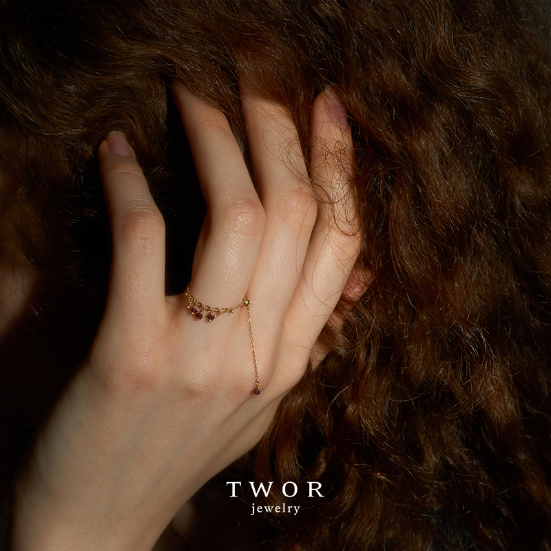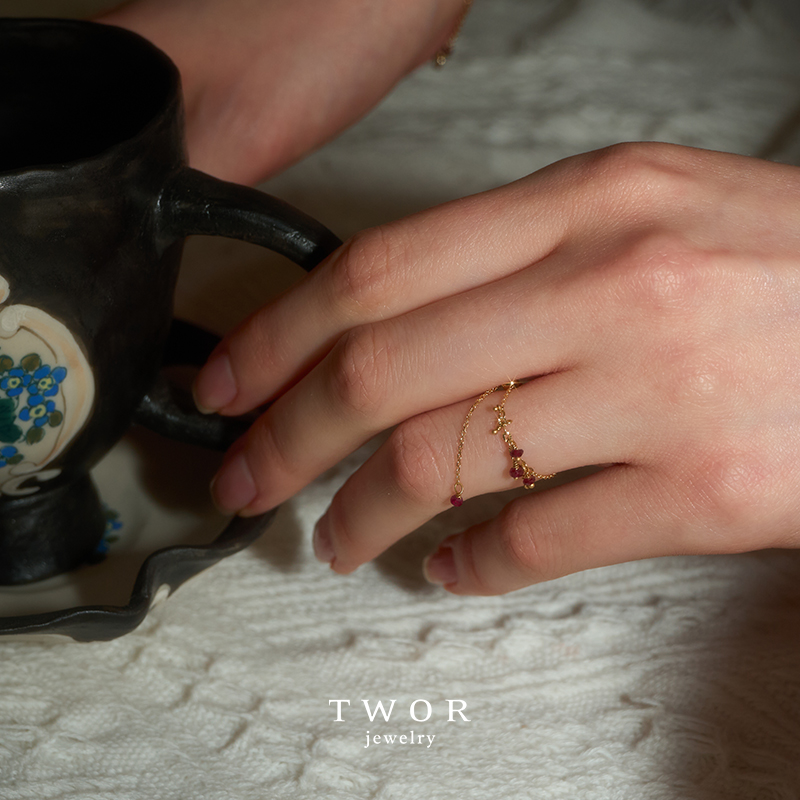 TWOR/Au750肌肤链手工18 k金baby ruby 红宝石软链戒指女轻奢小众