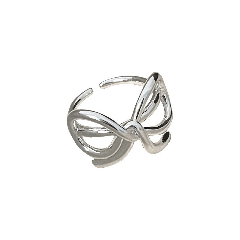 简约几何线条蝴蝶结戒指女个性时尚百搭网红S925镀银开口食指环潮