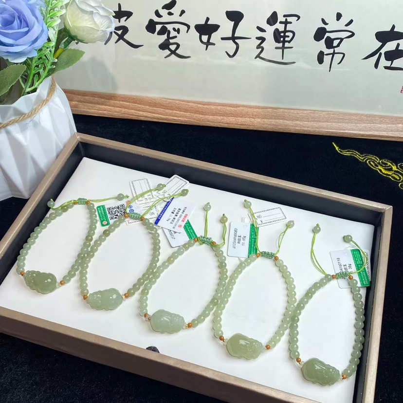 正品天然和田玉晴水貔貅手链玉石手串富贵有余玉手饰附证书可调节