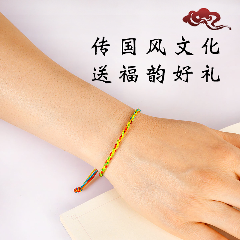 五彩绳手手链工编织手绳简约细款男女红绳手链端午节送Y人礼物礼