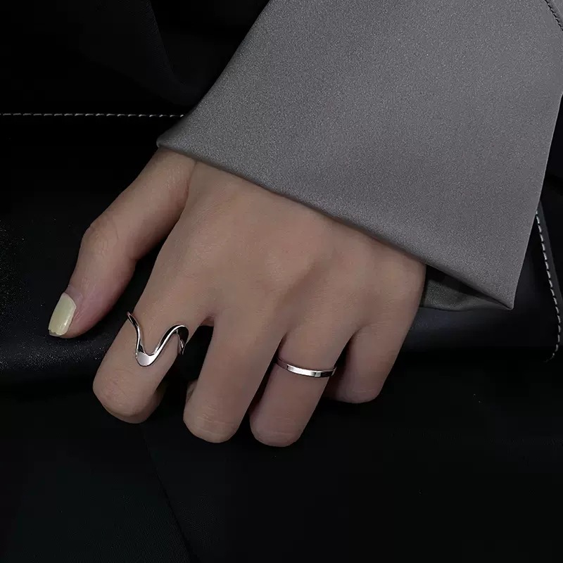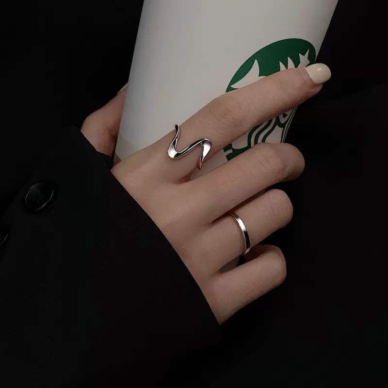 不规则曲线戒指女设计小众925纯银戒指女时尚个性开口食指女ins潮