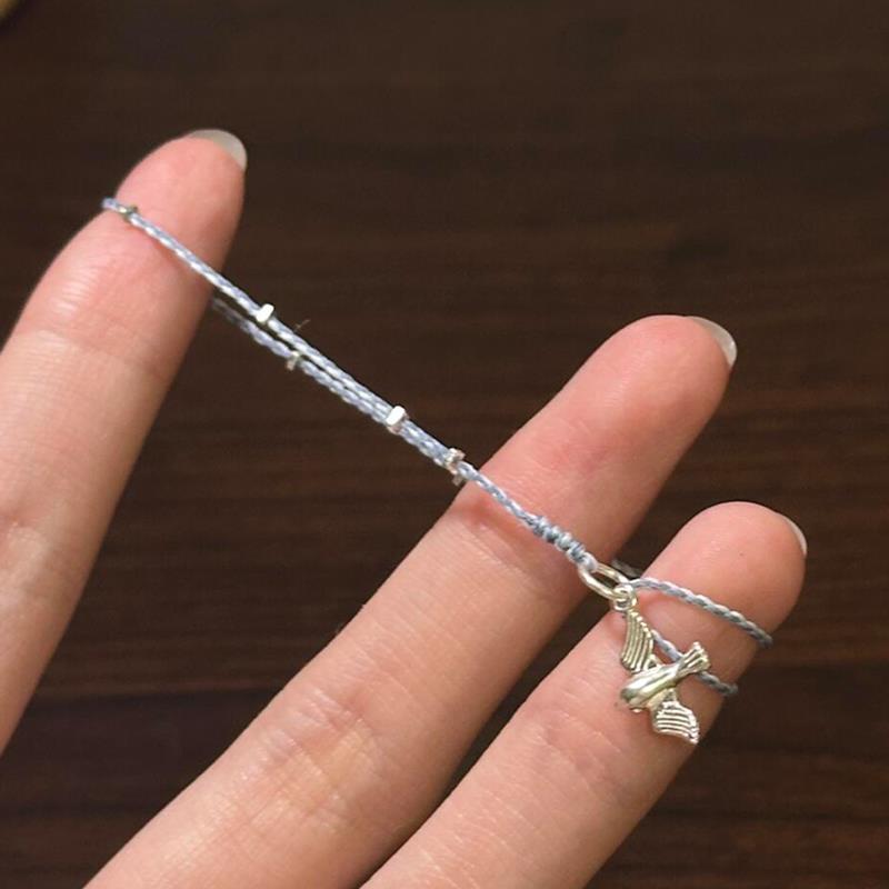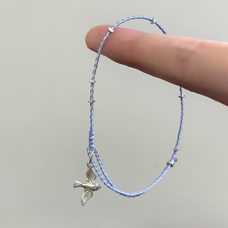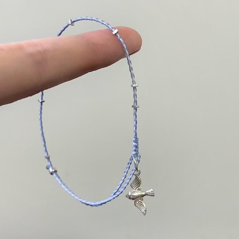 S925纯银新中式复古燕子手链蓝色编织手绳可调节轻奢小众精致手饰