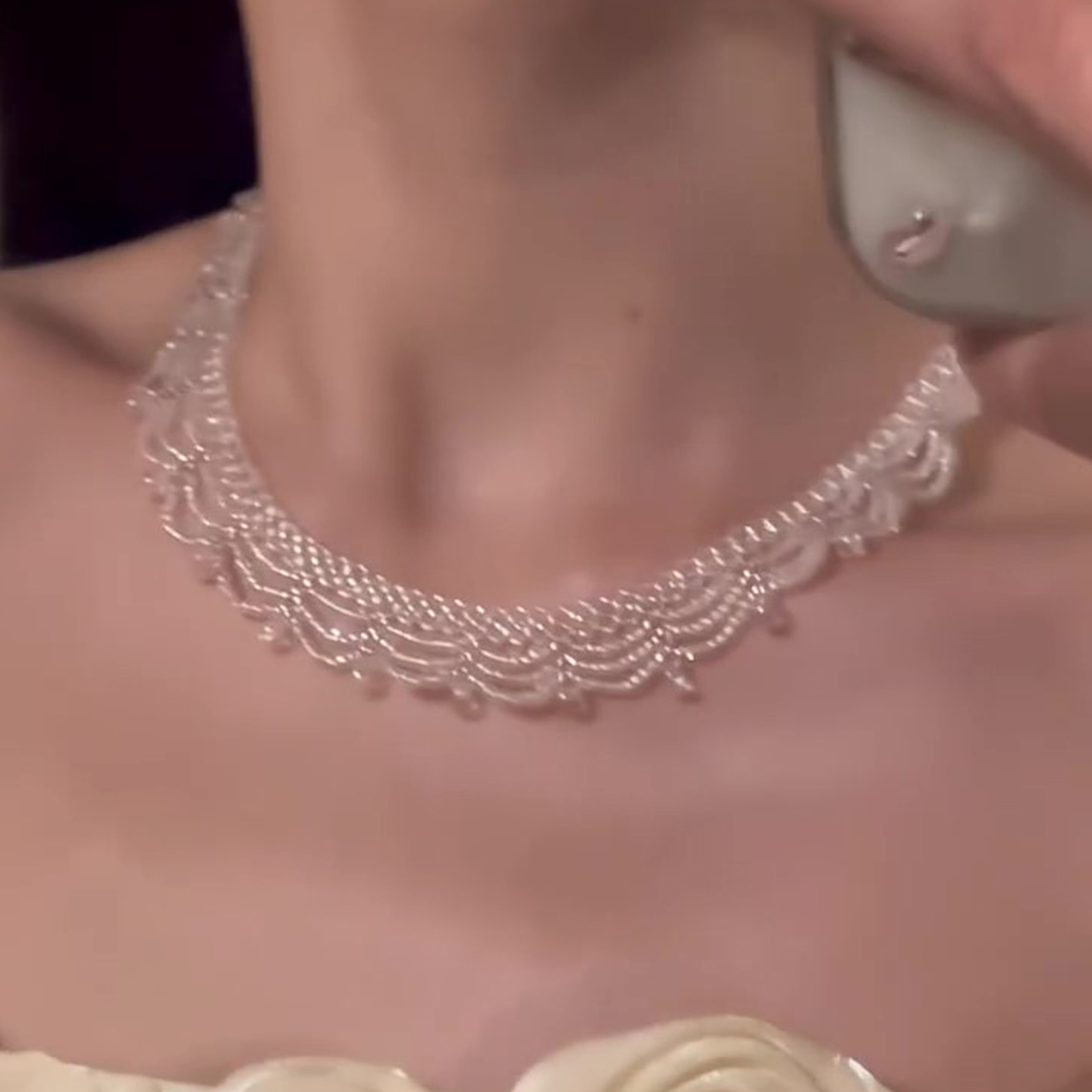 法式多层蕾丝花边串珠项链小众重工编织叠戴宴会choker锁骨链