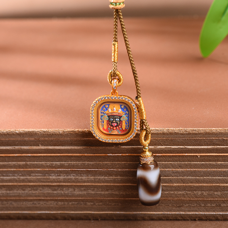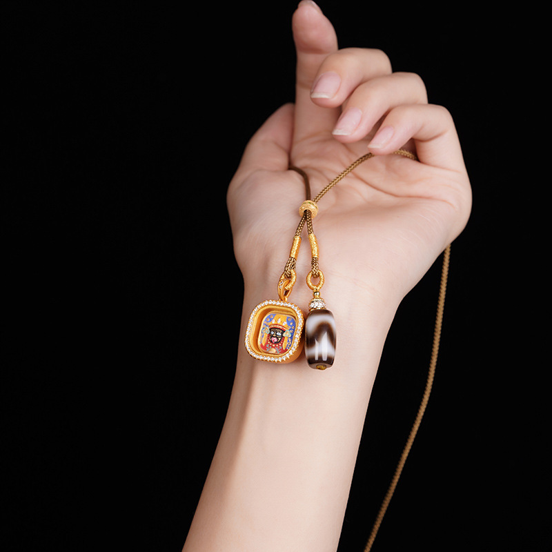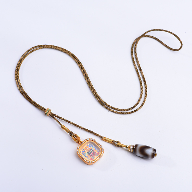 新中式吊坠绳手绘扎基拉姆唐卡项链男女款藏式手工编织小众毛衣链