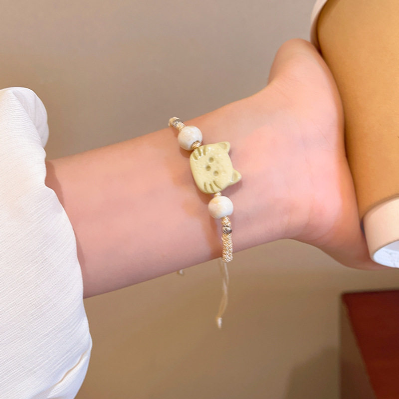 高颜值白色猫咪编织手链女小众精致百搭手绳高级感轻奢手串配饰品