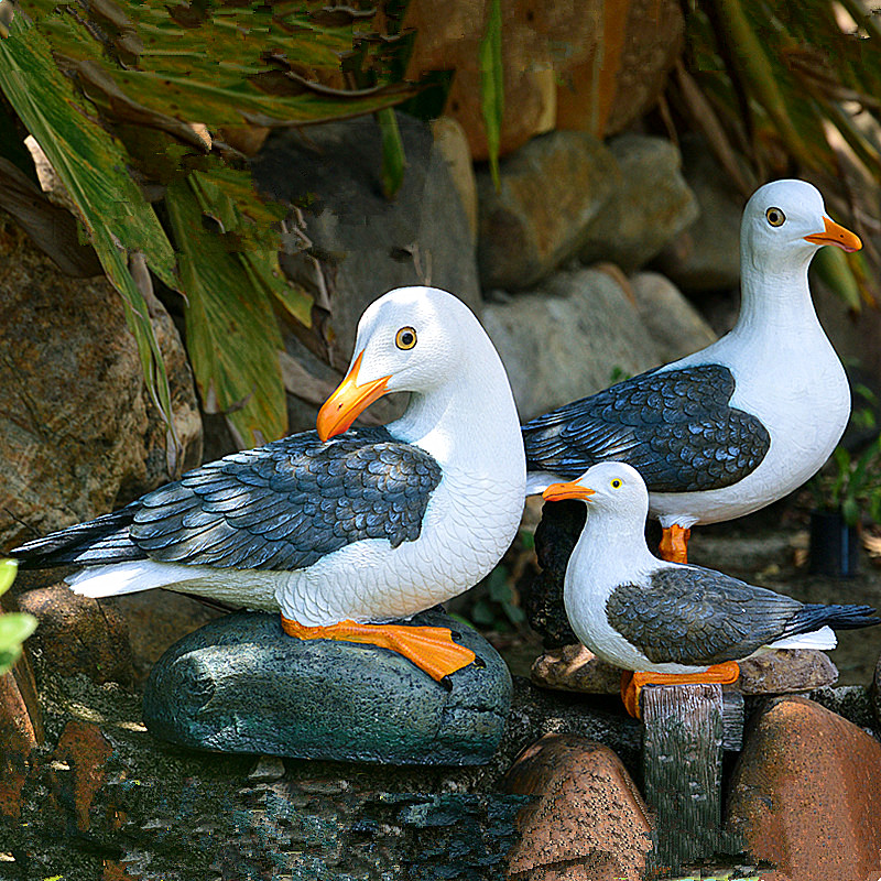 仿真海鸥树脂工艺品摆件地中海风格装饰鸟类雕塑模型喷泉场景小品