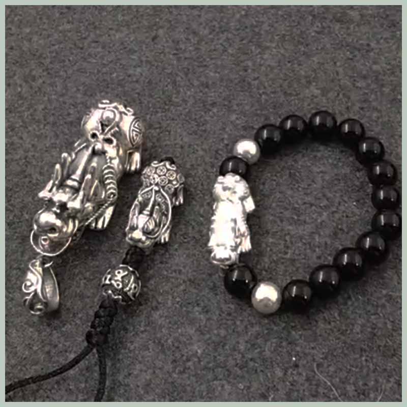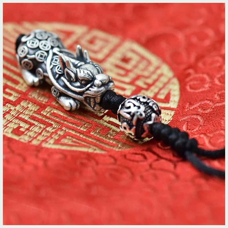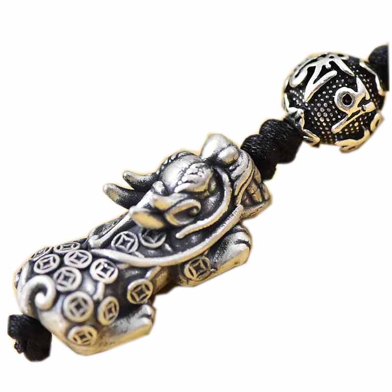 足银貔貅手链吊坠手机吊坠女黑绳情侣本命兔年银编织首饰品NO2340