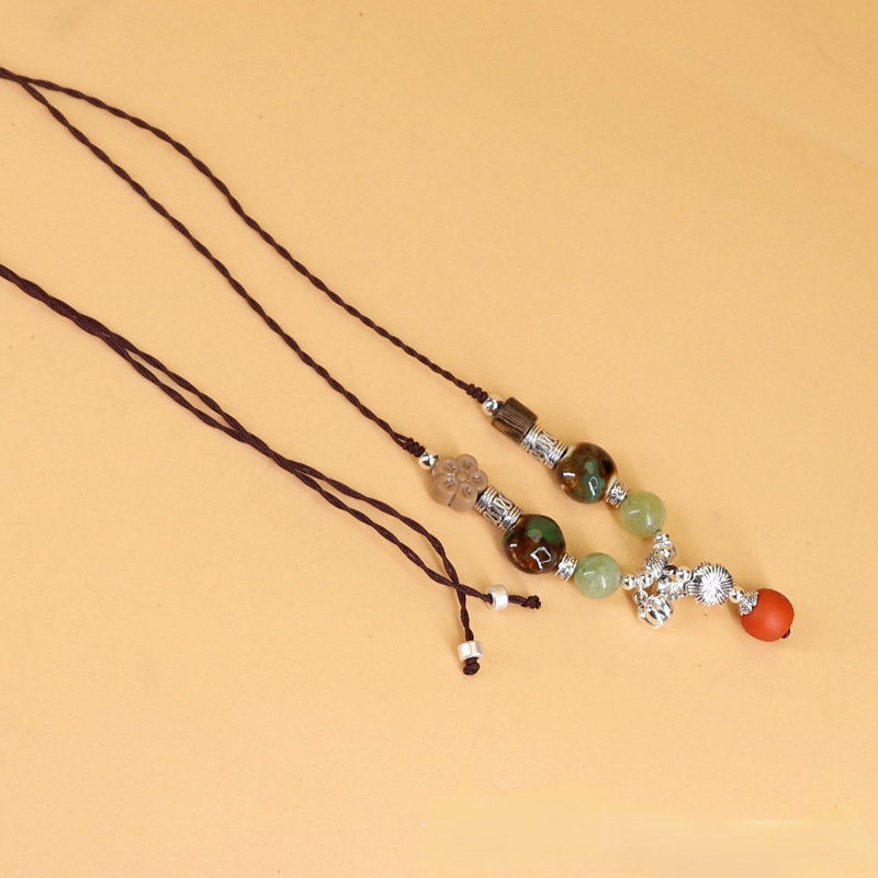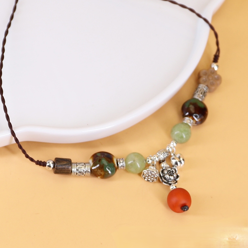 新中式陶瓷串珠项链女复古民族风手工编织绳锁骨链国风禅意配饰品