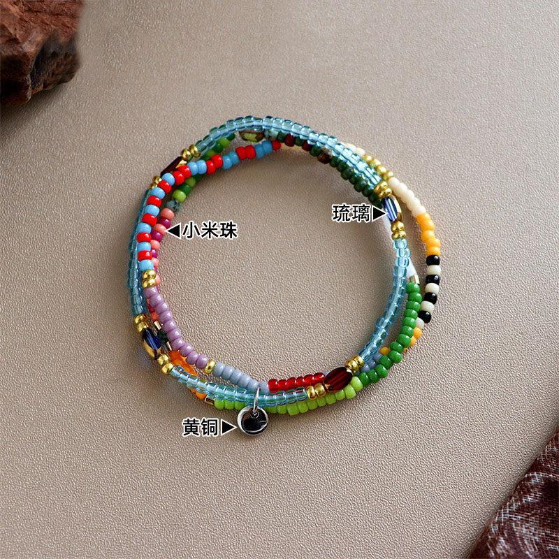 彩色多巴胺圆牌米珠水彩手链套组复古串珠轻奢ins风小众叠戴手饰
