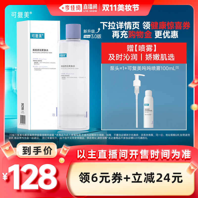 【李佳琦直播间美妆节】可复美柔肤水保湿补水爽肤水500mL