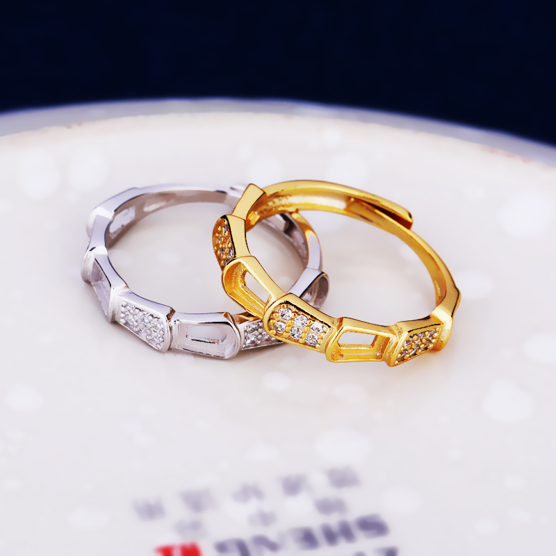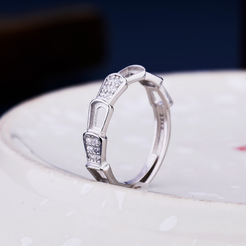 S925纯银戒指空托镶嵌翡翠和田玉蜜蜡绿松石开口戒指托女纯银空托