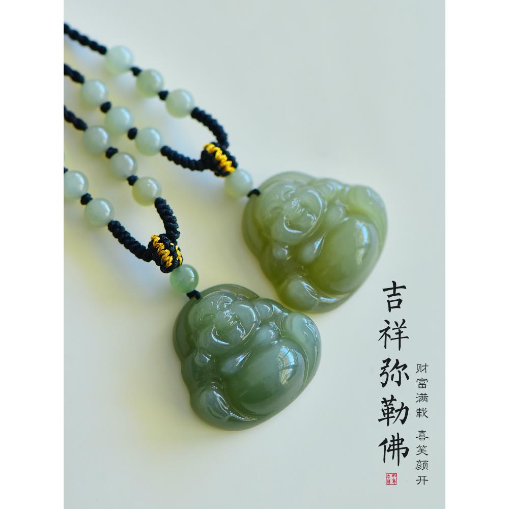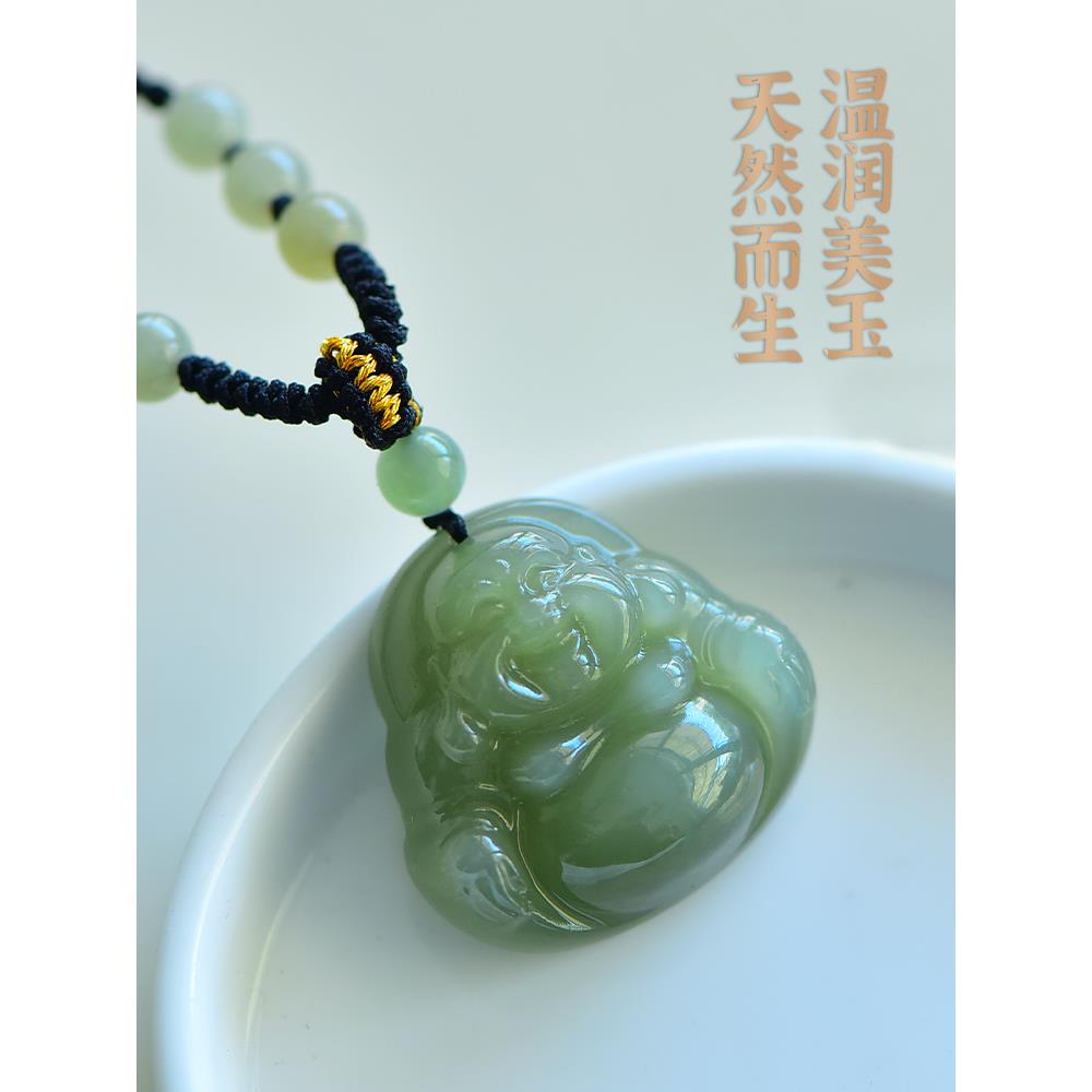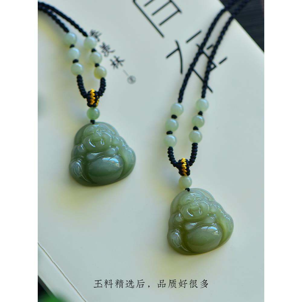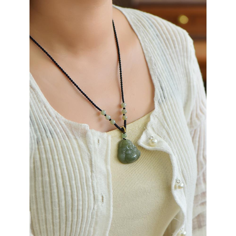 和田玉项链大肚佛弥勒佛平安编织黑绳不掉色女锁骨链闺蜜吊坠礼物