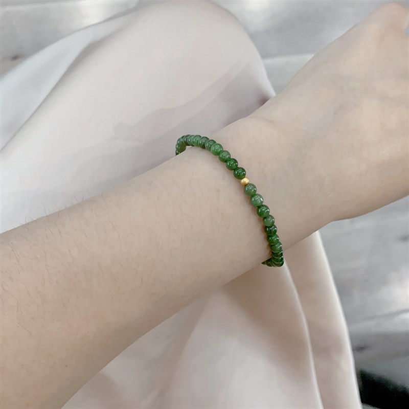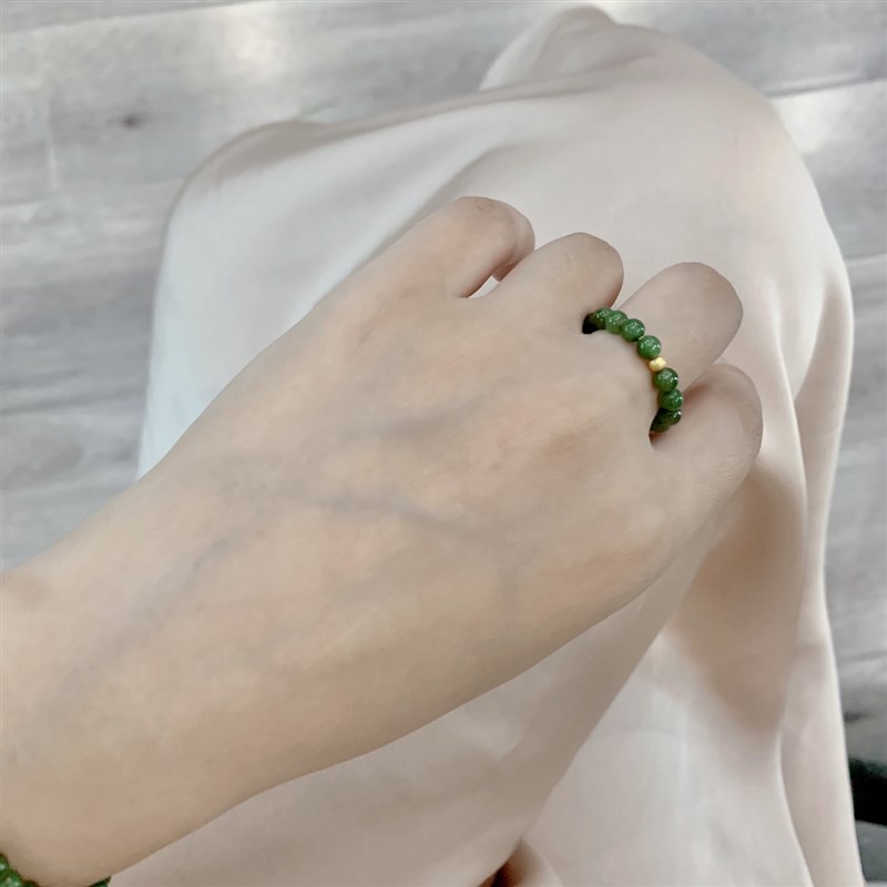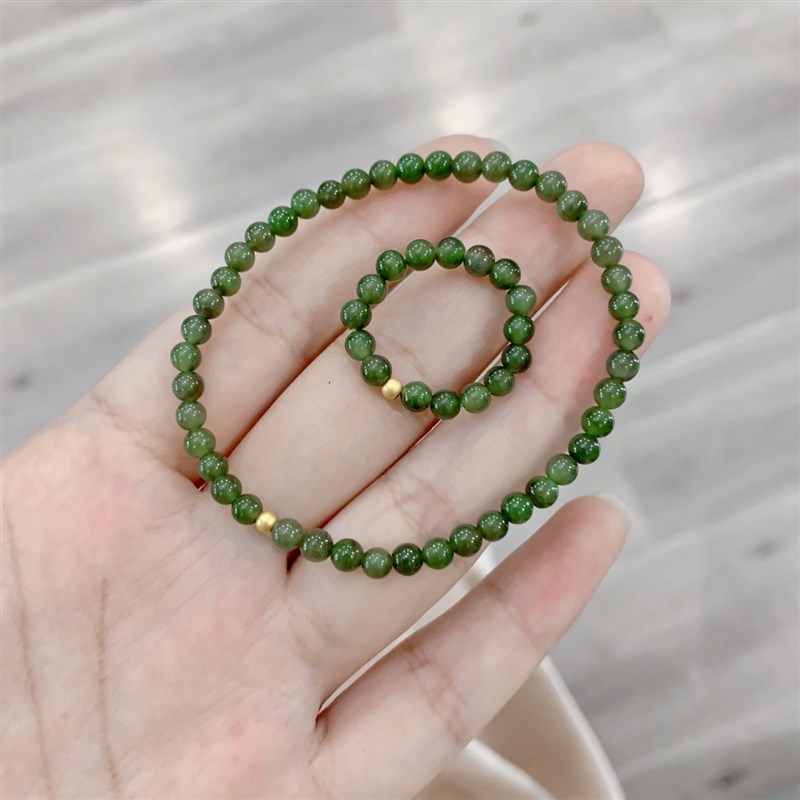 天然和田玉碧玉4mm左右精致单圈女款手链 戒指R一套 甜美百搭碧玉