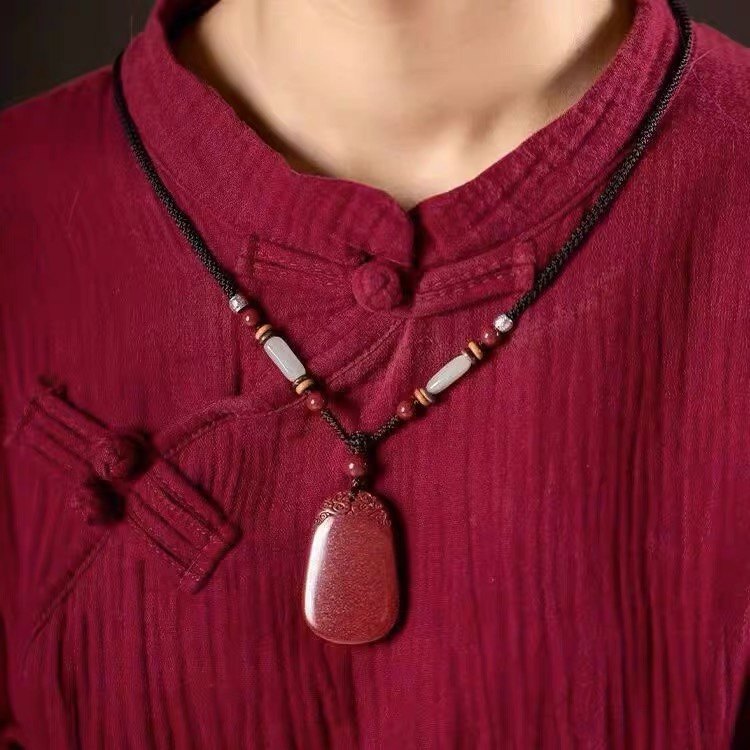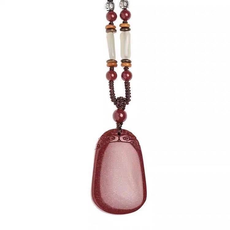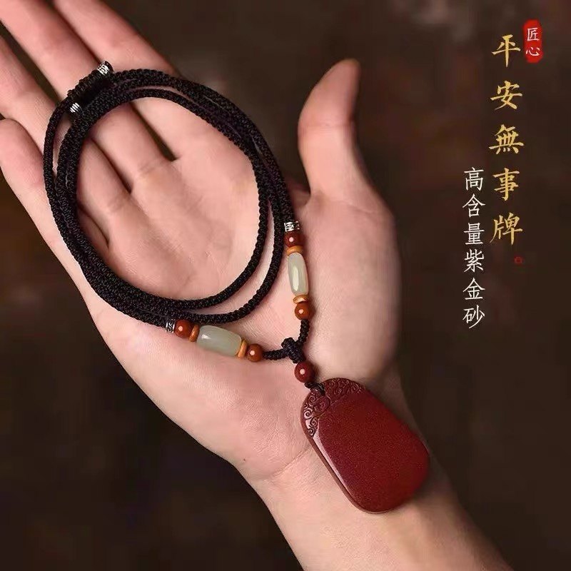 天然高含量朱砂平安无事牌吊坠男女款项链本命年紫金砂护身符挂件