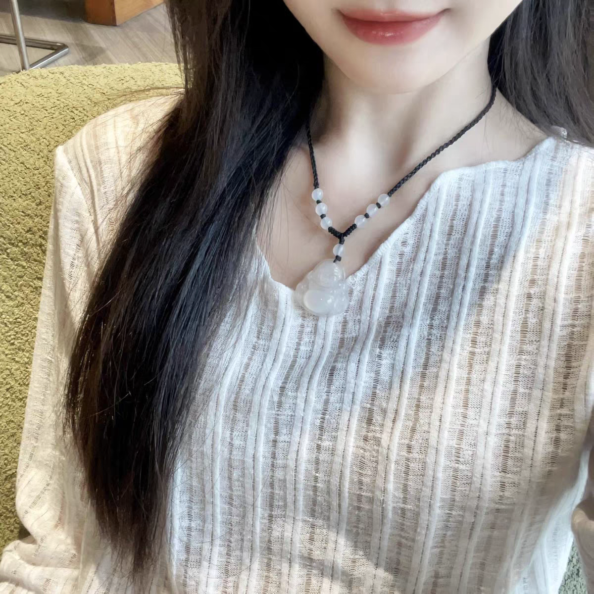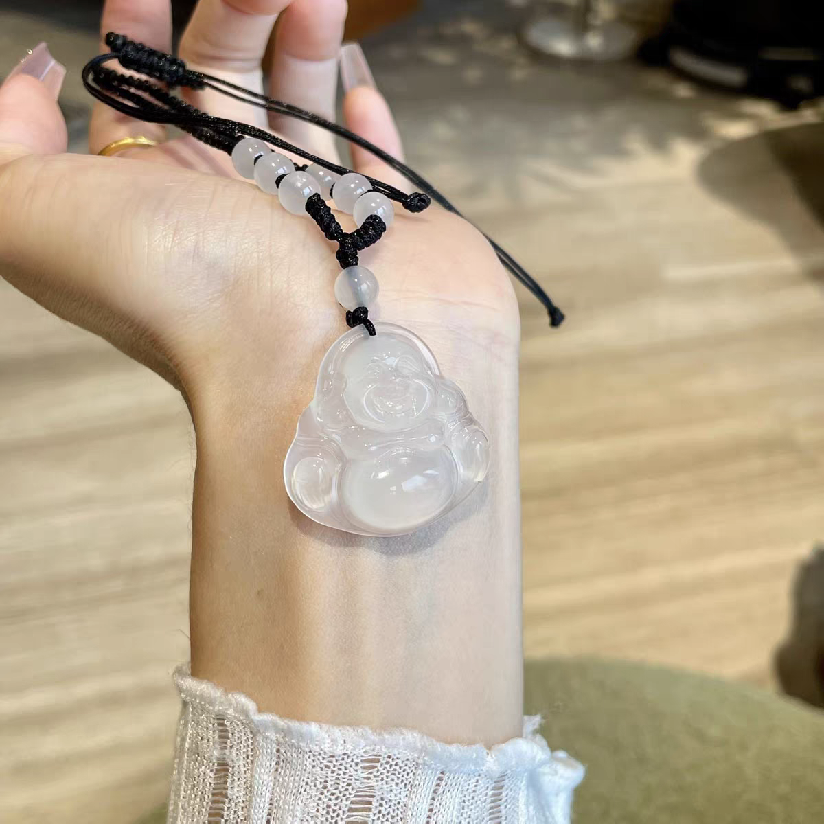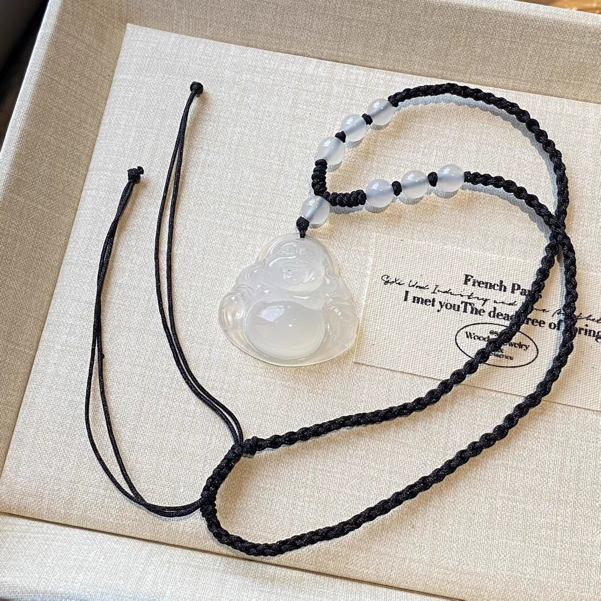 天然玉髓大肚佛吊坠项链平安编织黑绳弥勒佛简约锁骨链送闺蜜礼物