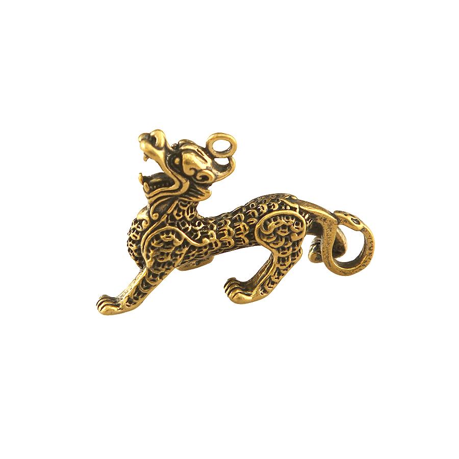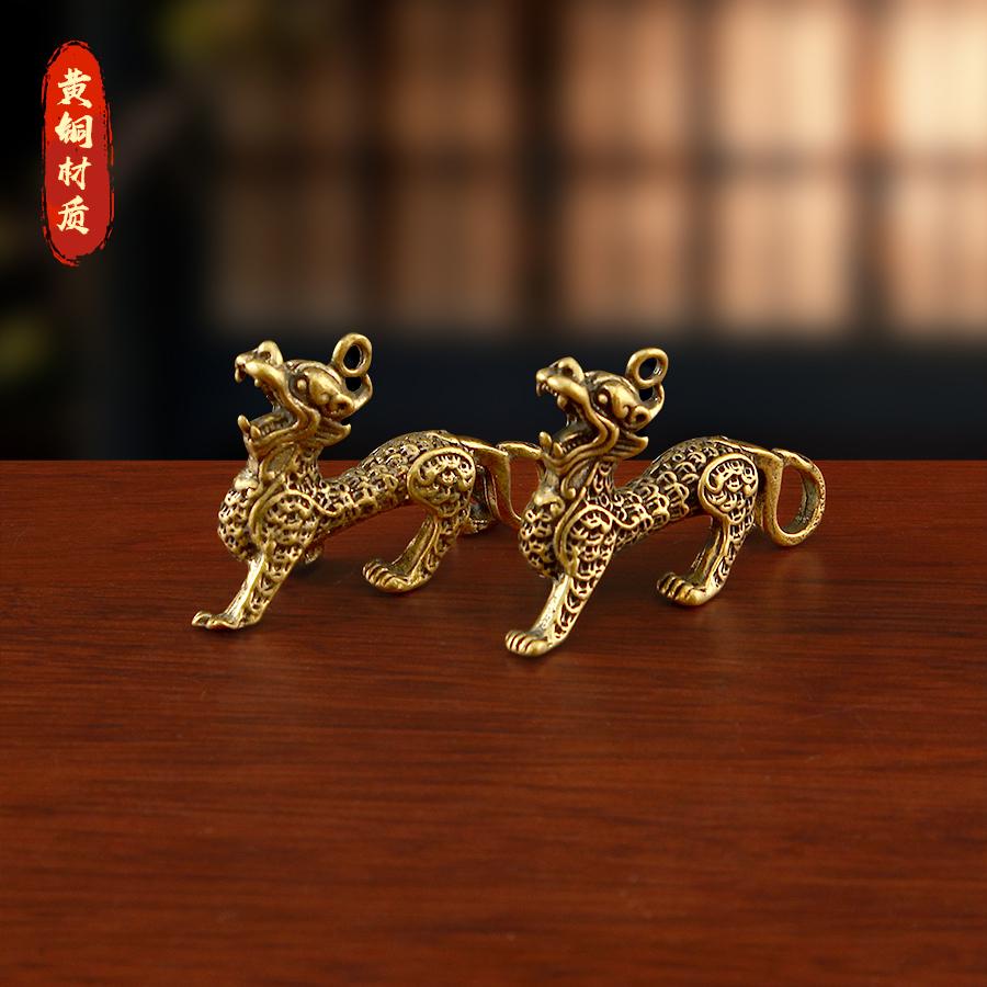 黄铜金钱麒麟钥匙扣挂件桌面小摆件配饰创意个性复古麒麟貔貅铜器