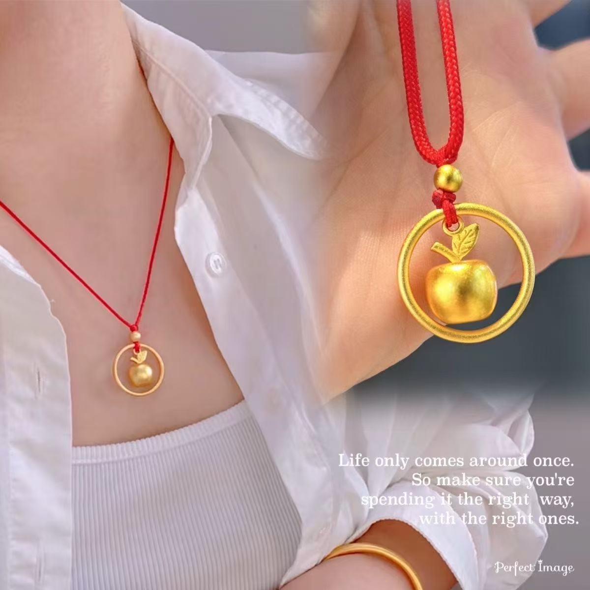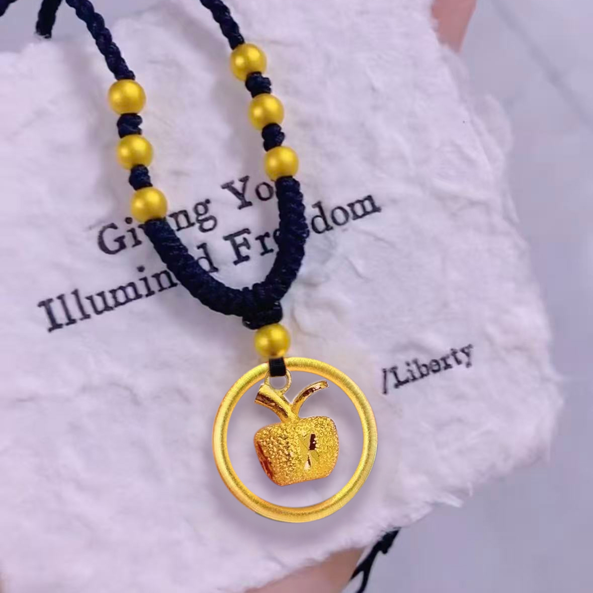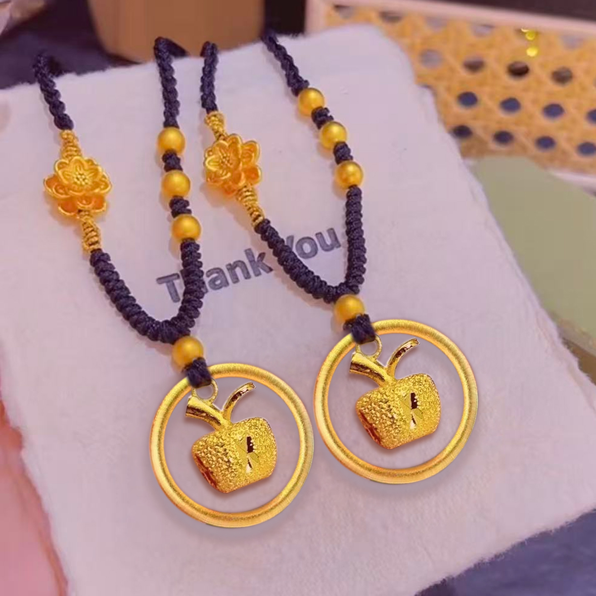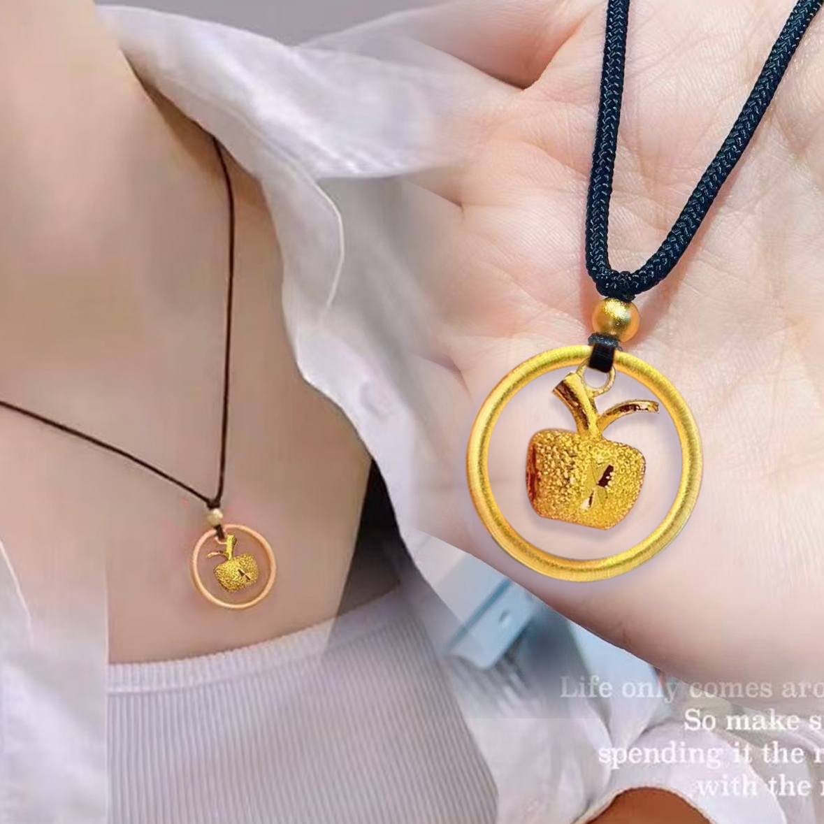 戒指圈磨砂车花小苹果编织黑绳吊坠项链平安小众甜美圣诞毛衣链女