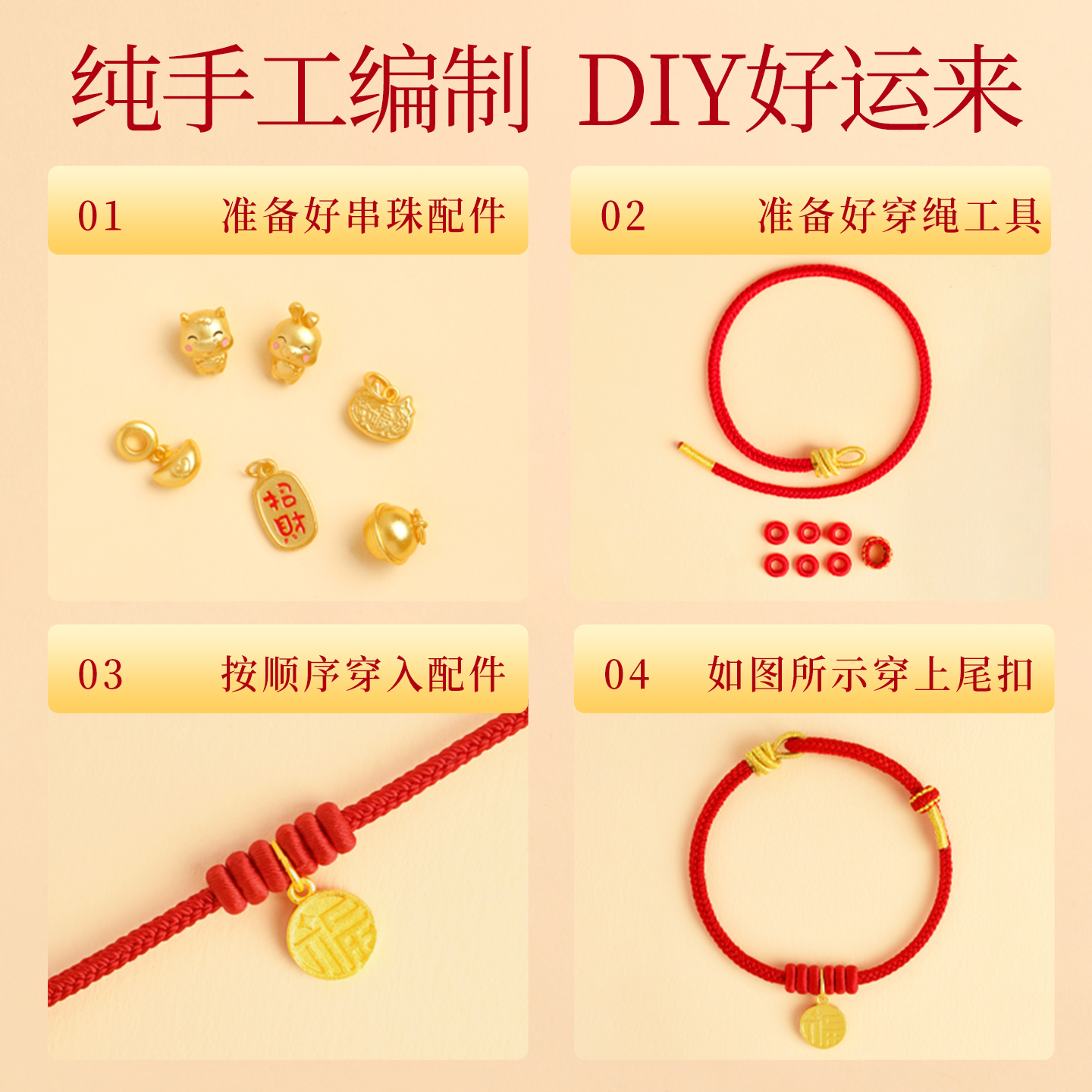 本命年红手绳半成品手工编织绳可穿黄金diy转运珠福牌红绳手链女