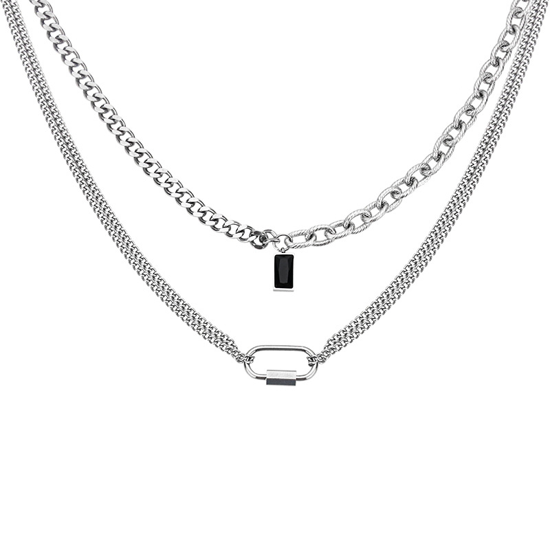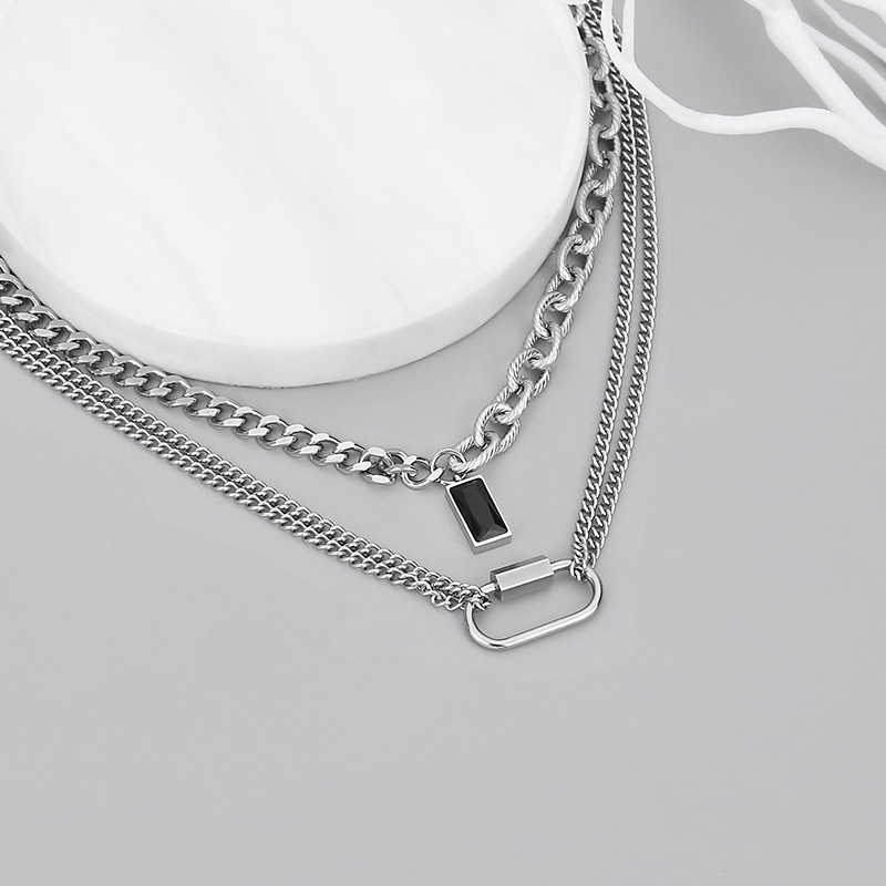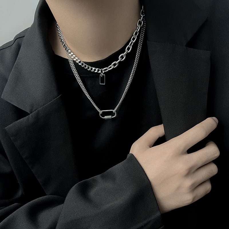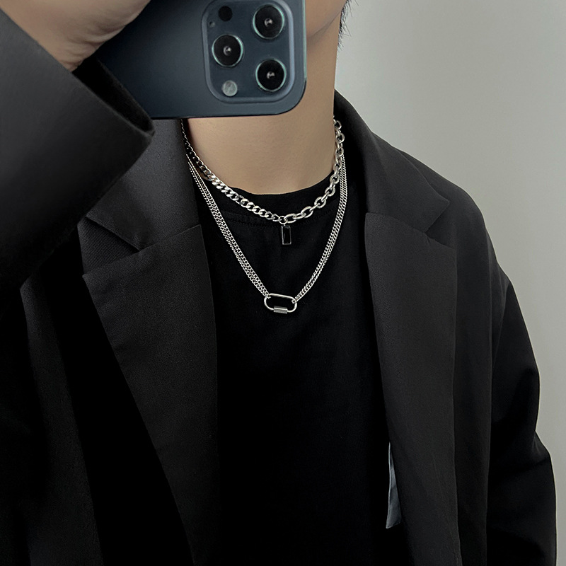 复古宝石双层拼接项链男ins冷淡风简约潮流钛钢设计不掉色毛衣链