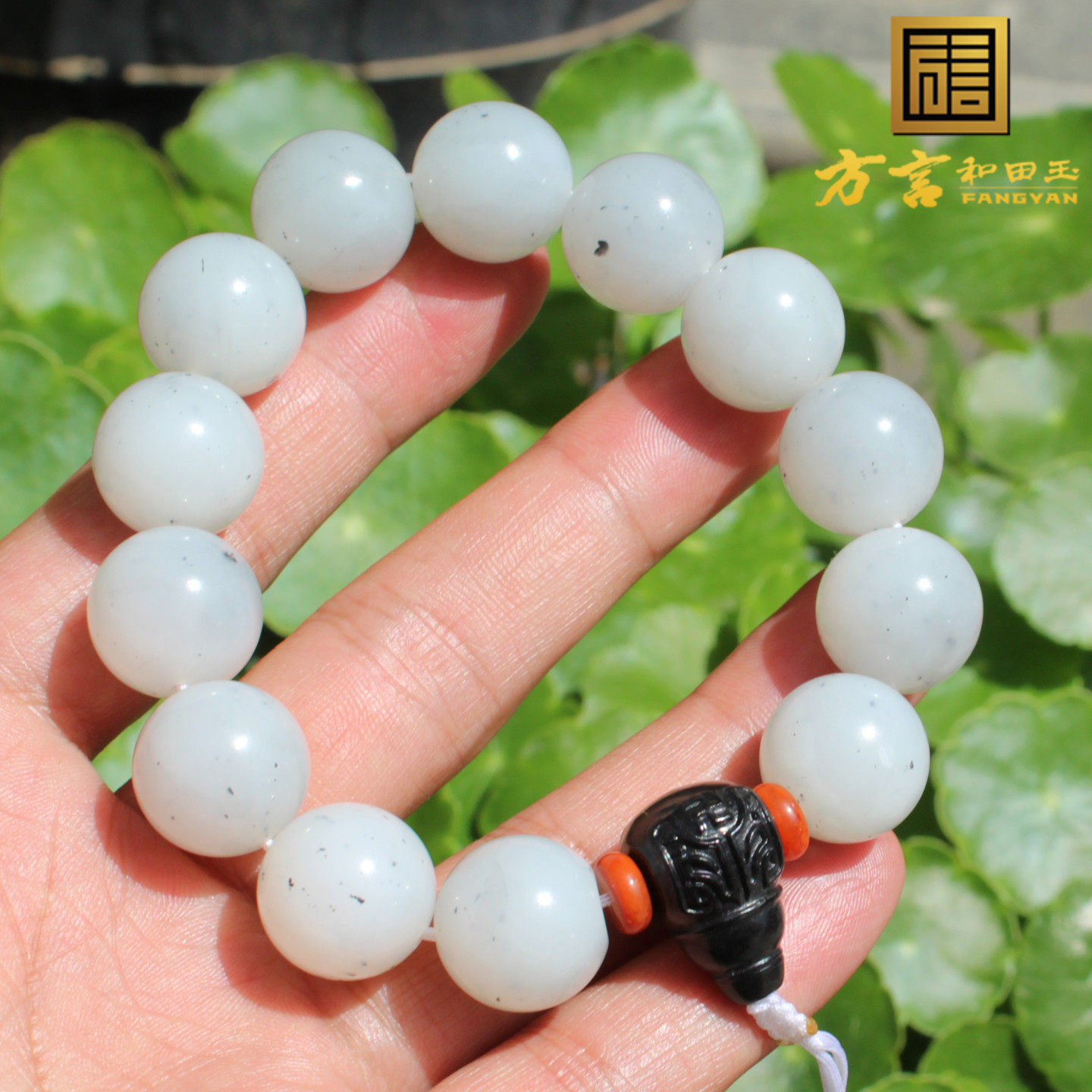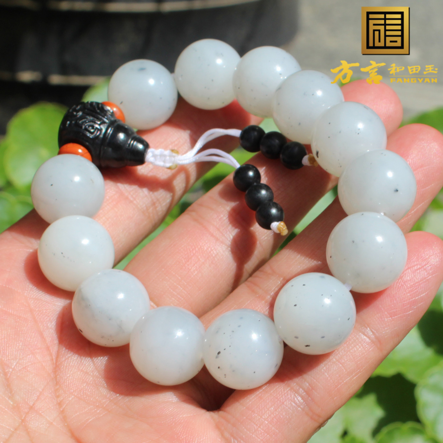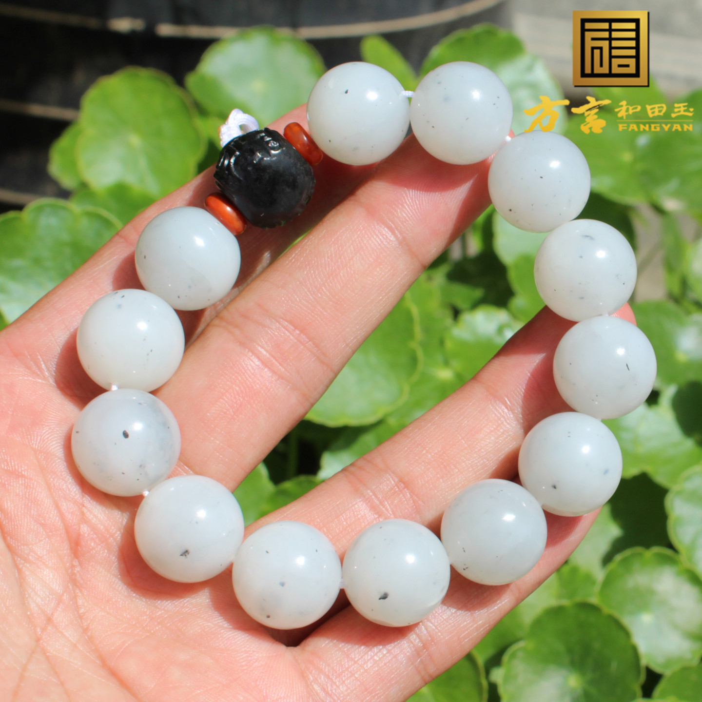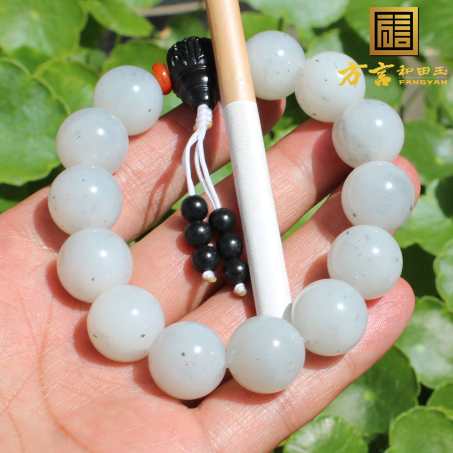 年度回馈方言和田玉特色新疆细润点墨青花籽料16mm圆珠手串手链A1
