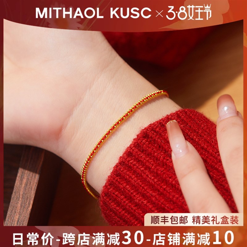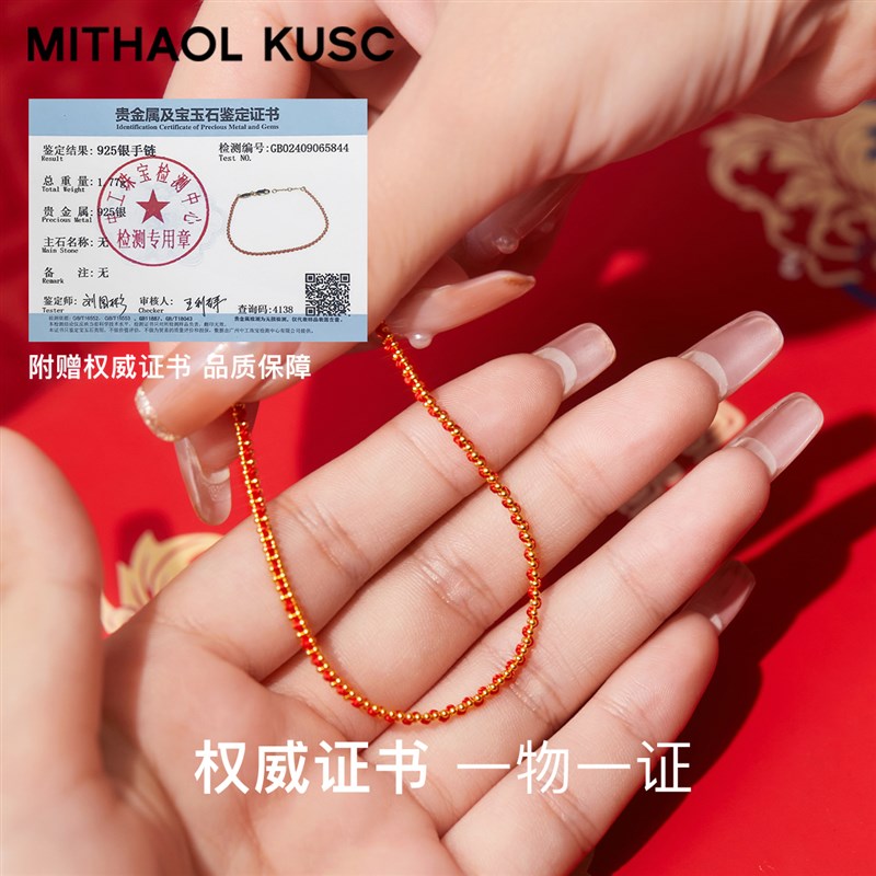 明星同款幸运编织红绳银手链女 本命年女款红色转运手绳小众首饰