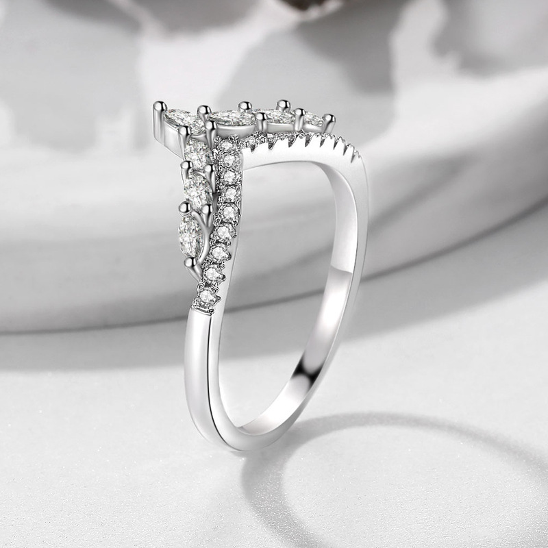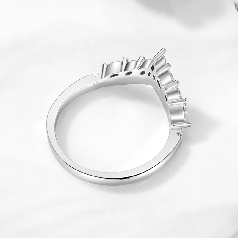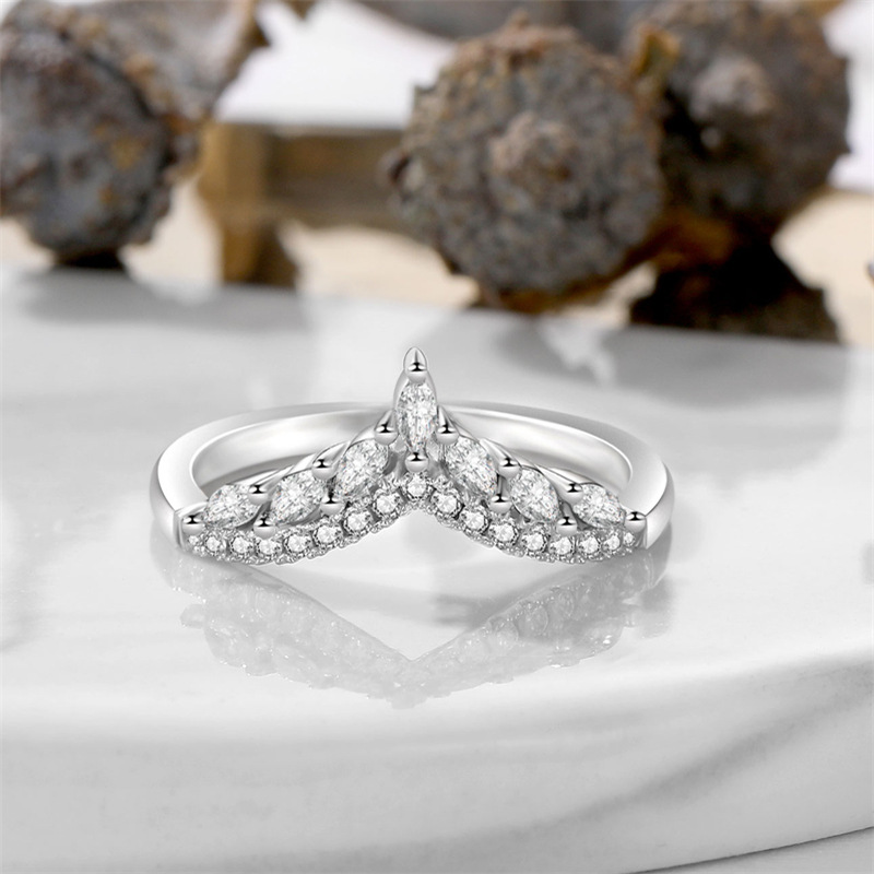925纯银V型许愿皇冠莫桑石戒指女轻奢气质食指排戒叠戴排钻钻戒女