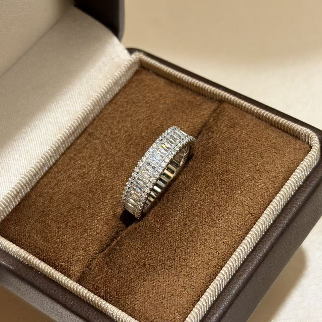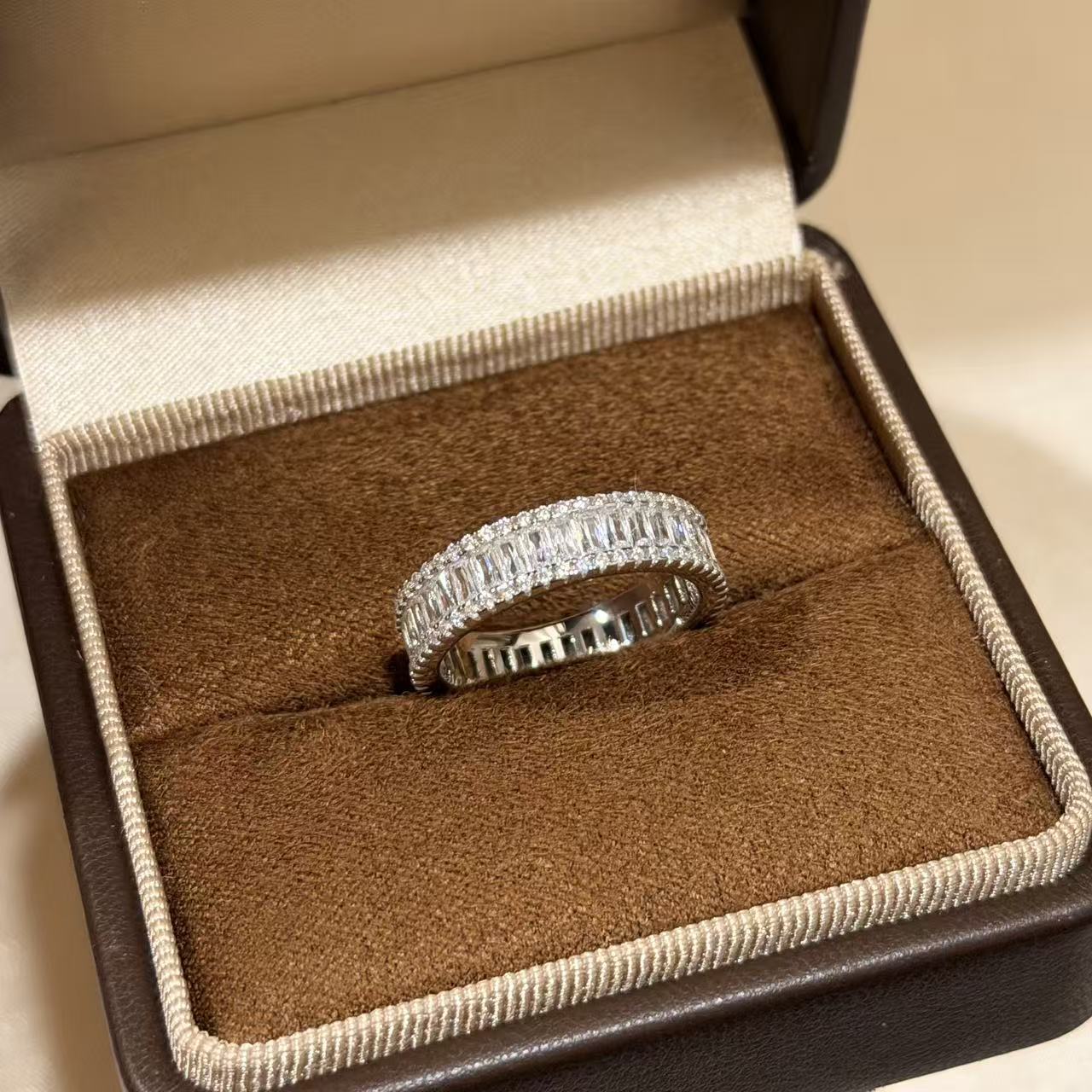 设计师s925纯银 满钻梯方钻戒指精致排钻爆闪感气质仿真钻排钻
