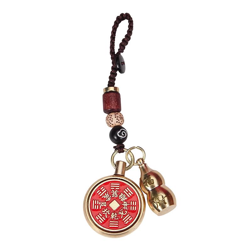 朱砂山鬼花钱纯黄铜转转道家钥匙扣挂件手工编织檀木钥匙挂绳饰品