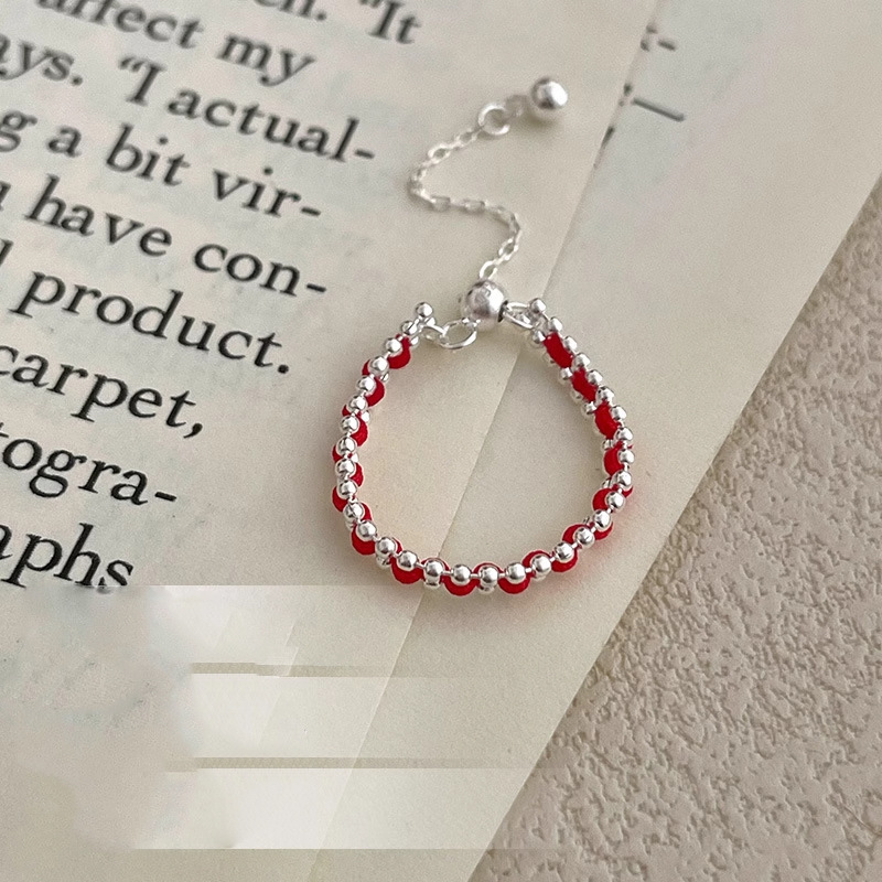 红色系抽拉红绳戒指简约高级感精致时尚手工编织新年