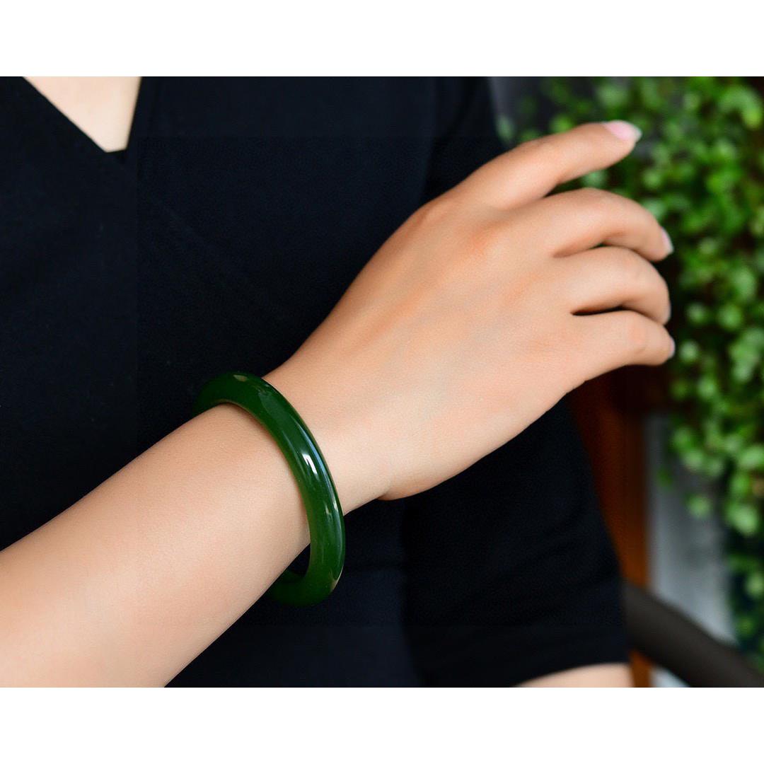 收藏级天然和田玉俄罗斯碧玉56.5圈口手镯老坑料满绿色细度过灯cs