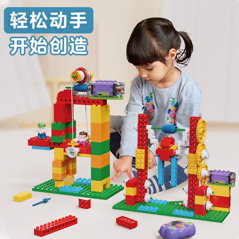 积木大颗粒男女孩电动机械齿轮科教遥控编程儿童益智拼插拼装玩具