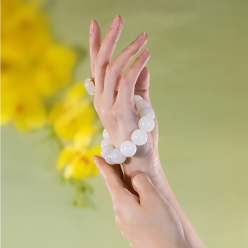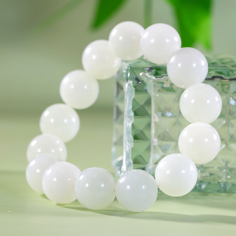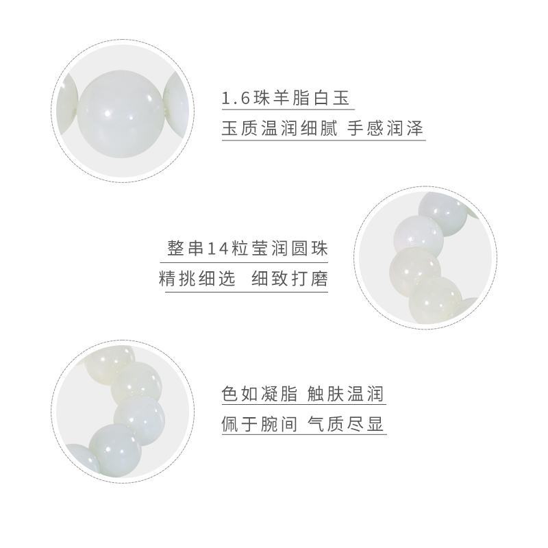 和合玉器和田玉羊脂白玉1.6珠圆珠手链玉石手串珠串玉珠女士礼物