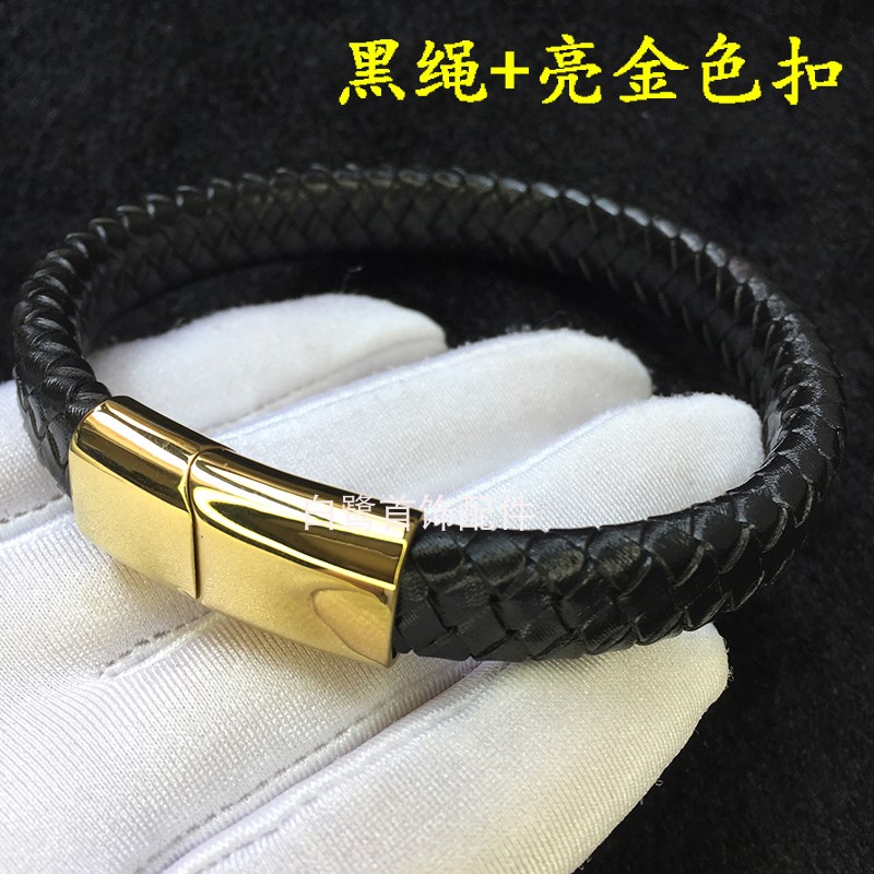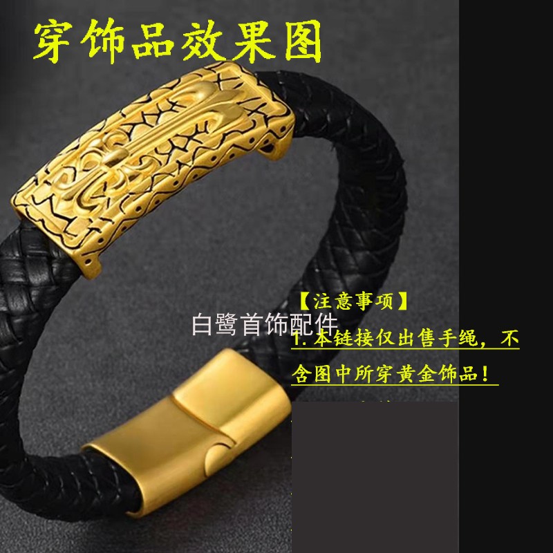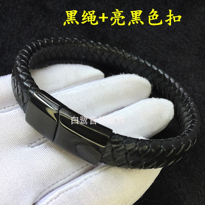 编织扁皮绳男士12*6mm黑皮扁手绳10*5手镯简约大气宽手链8*4毫米