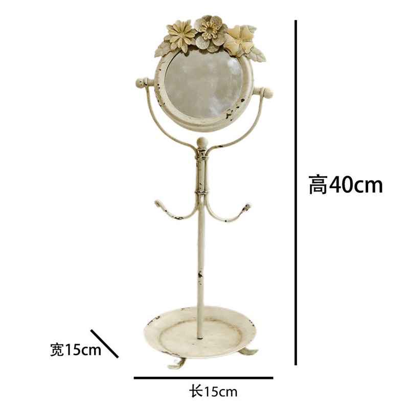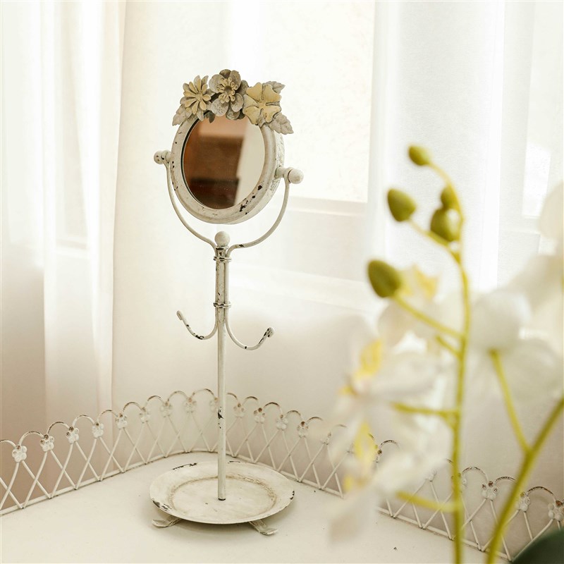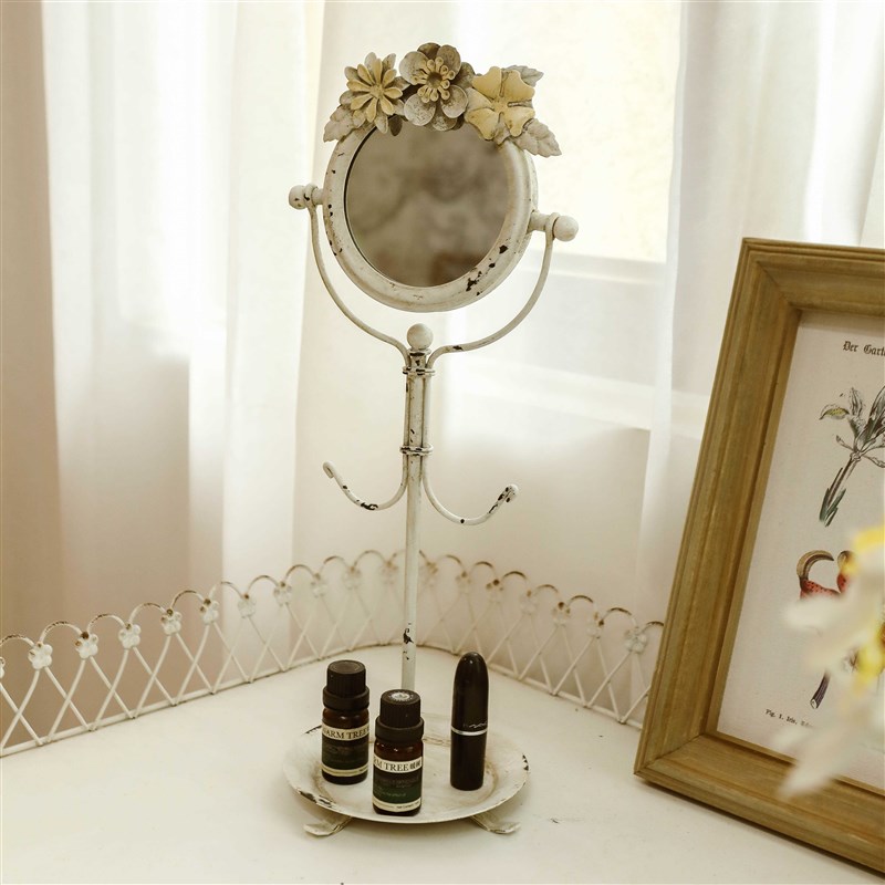 法式花朵装饰镜带托盘r带挂钩的化妆镜首饰挂架复古白色桌面装饰