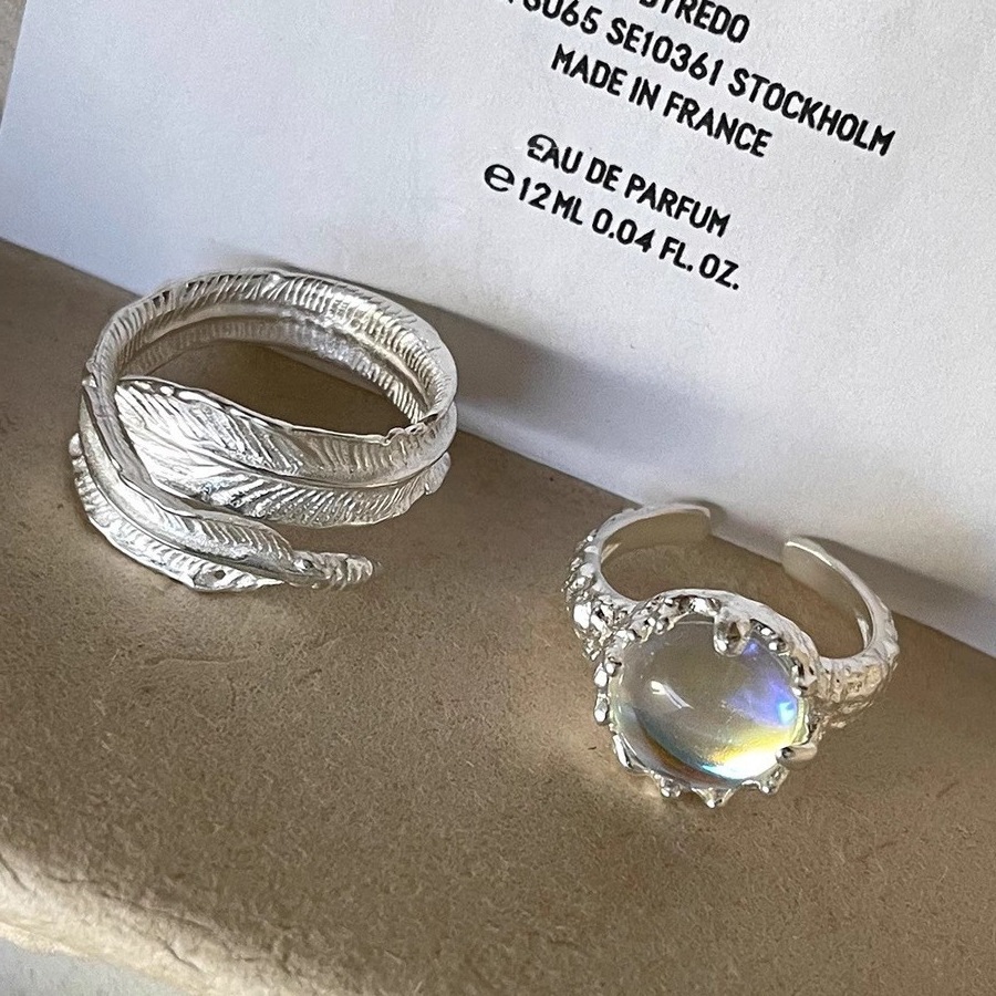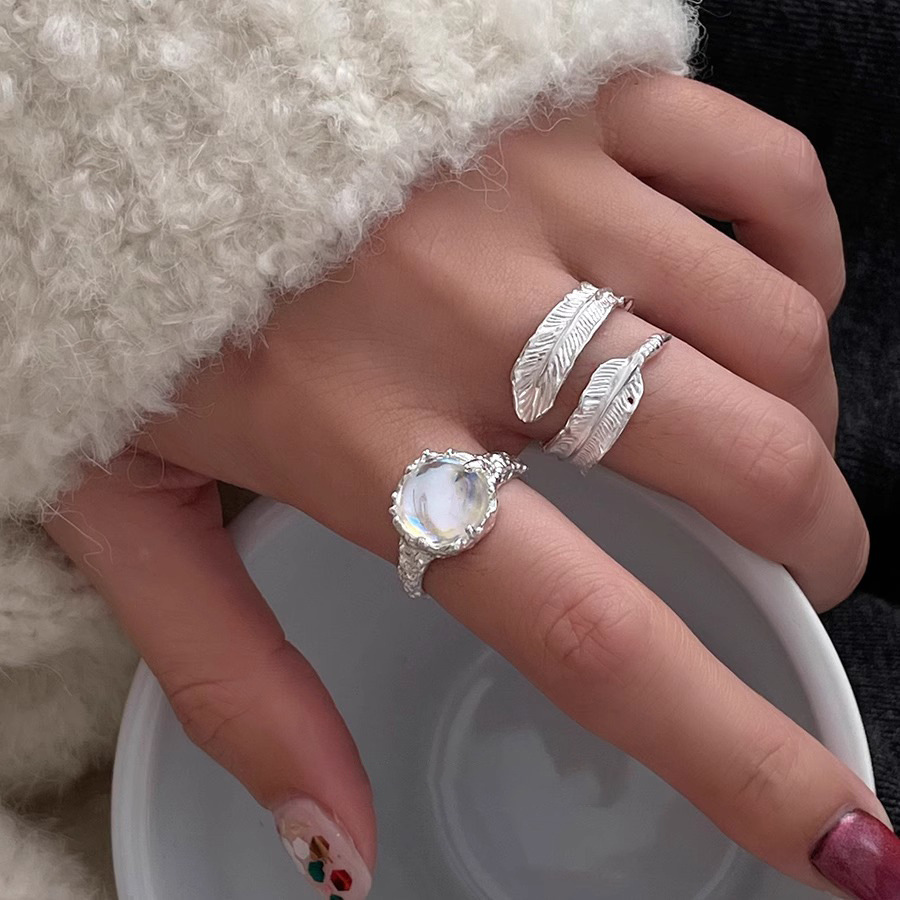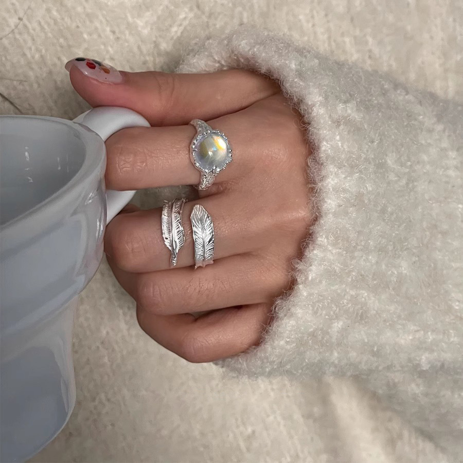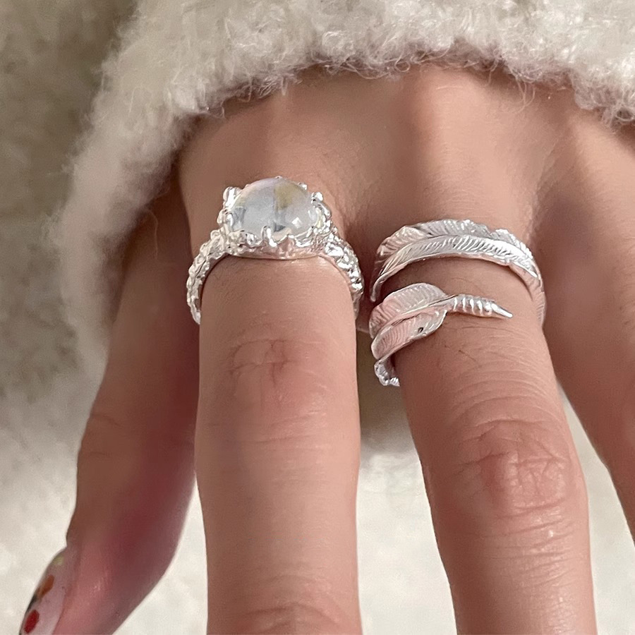 一恋甜美羽毛叠戴戒指女精致轻奢通透几何开口指环小众设计感食指