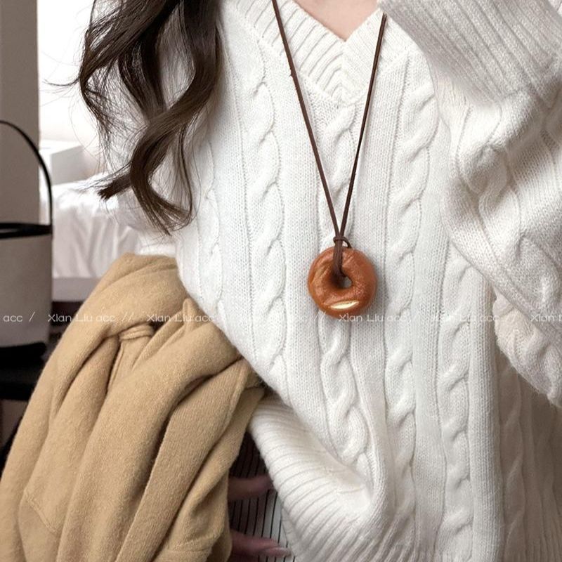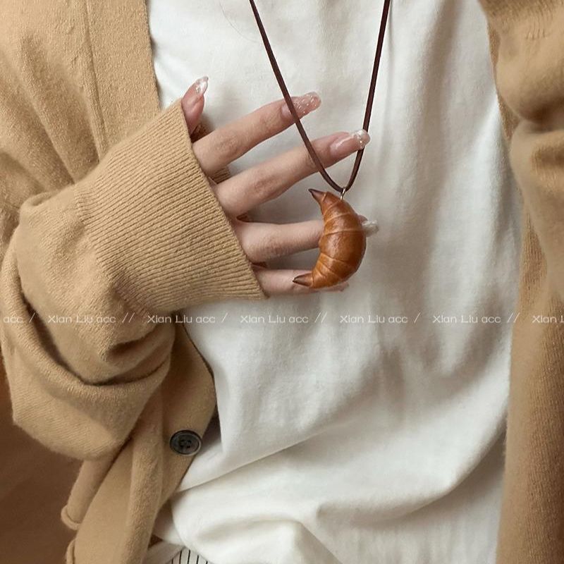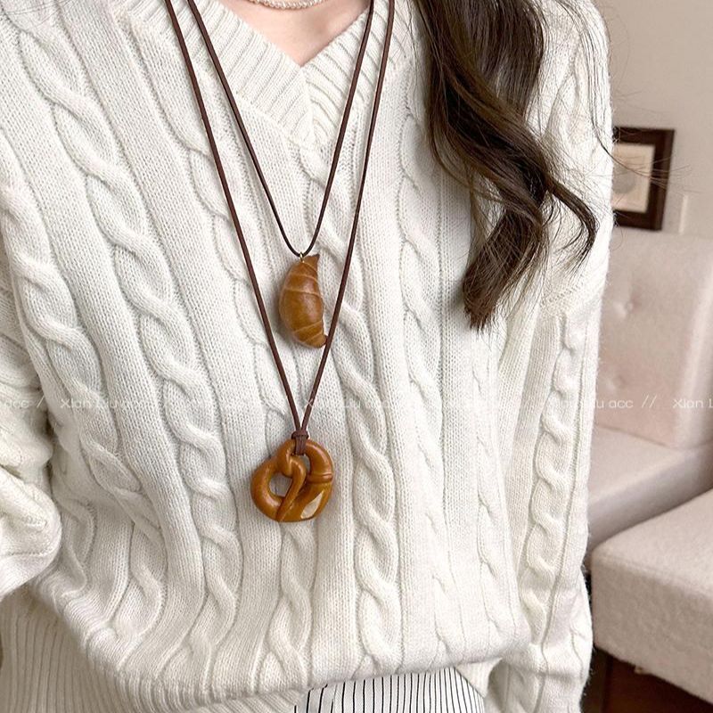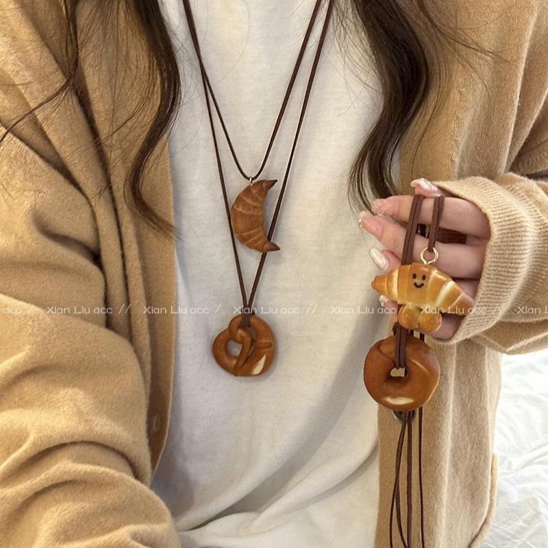 手工面包碱水结牛角包可颂仔长款吊坠项链女款个性小众毛衣链配