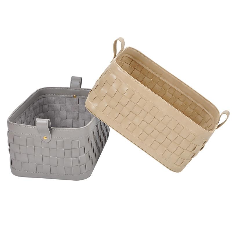 日系新款手工编织皮革收橱纳篮玄关室卧衣桌面长方形收纳813026小