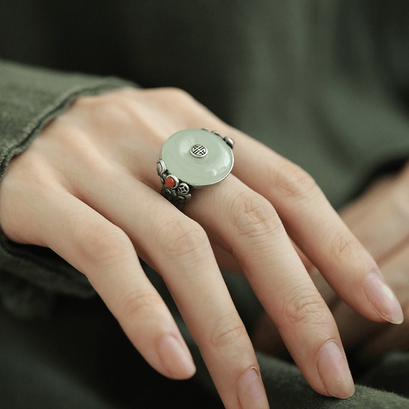 925银新中式复古风平安s扣戒指环和田玉轻奢高级感个性简约民族风