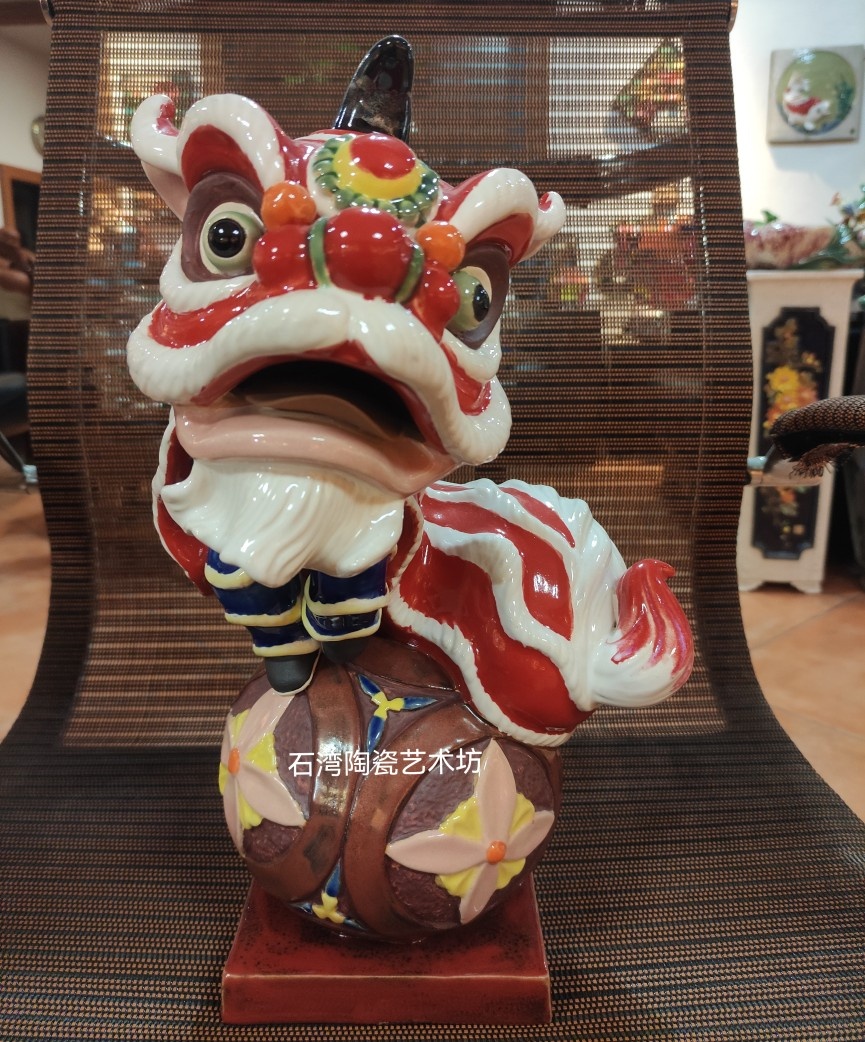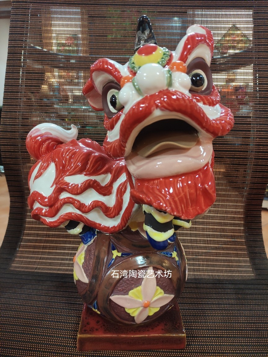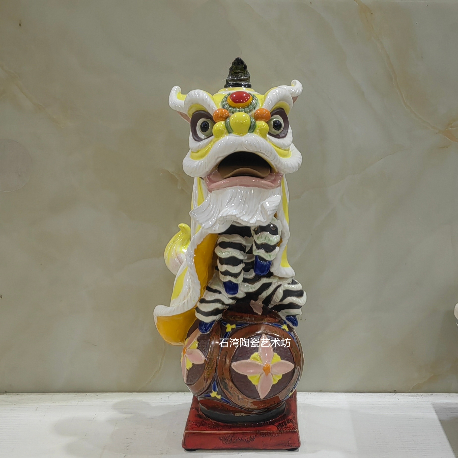 陶瓷舞醒狮子特色手信开业送礼祝福婚庆石湾公仔可爱舞狮手工摆件
