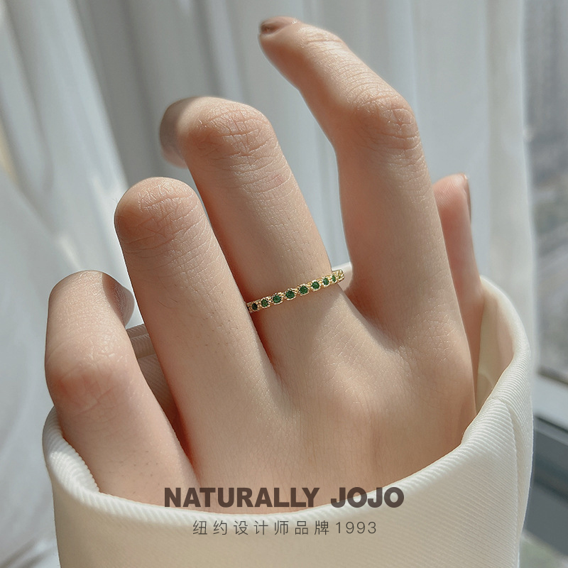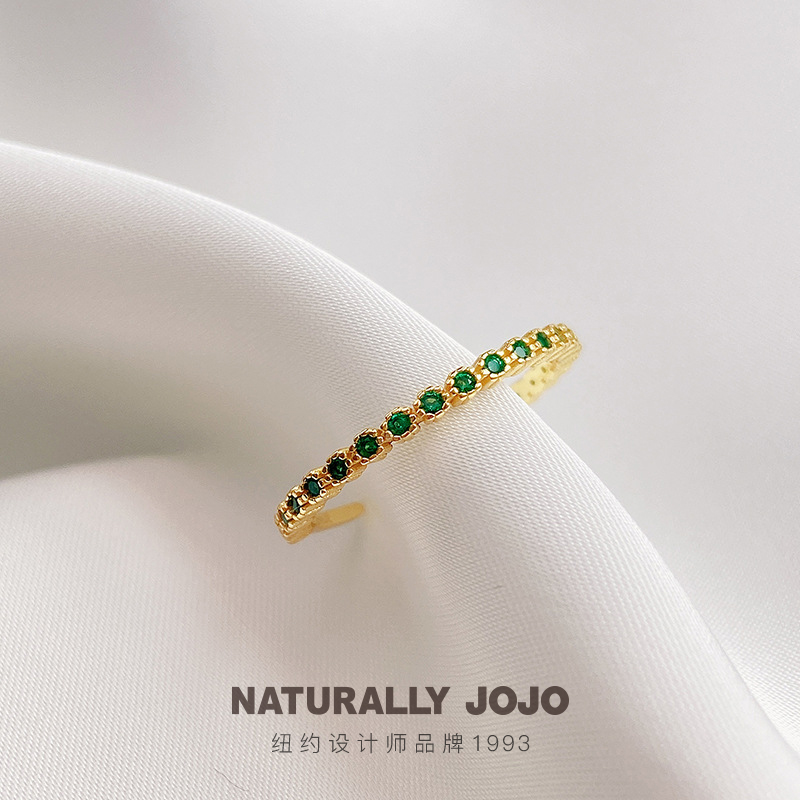 925纯银14K金绿色锆石戒指女生轻奢小众设计韩版气质细款开口指环