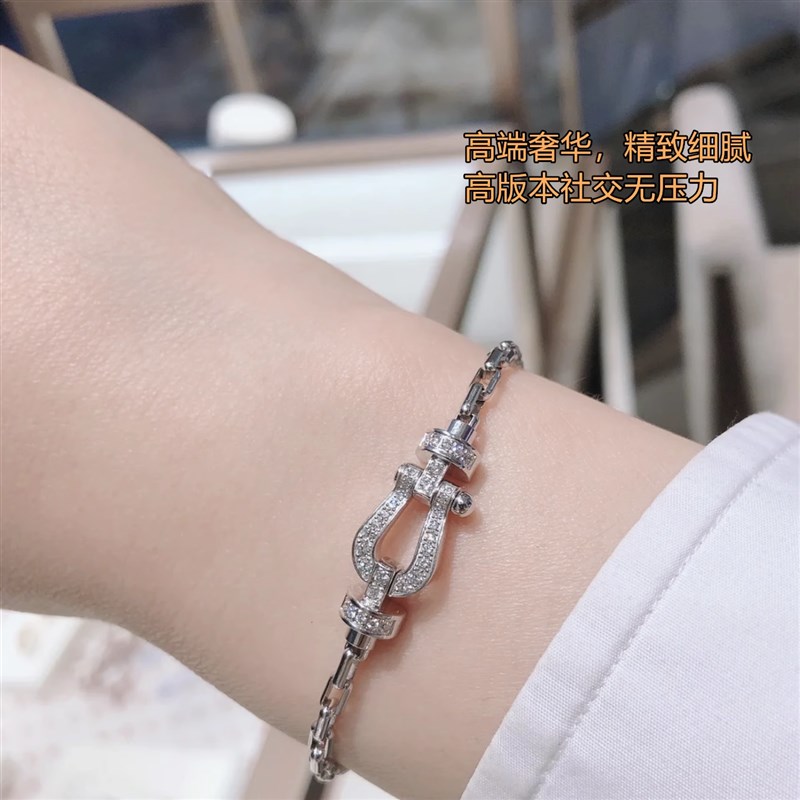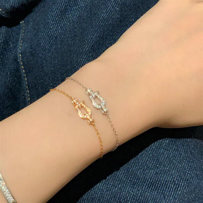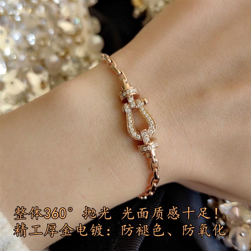 2025新款马蹄扣手链女满钻钢丝B手绳本命年红绳幸运航海扣情侣手