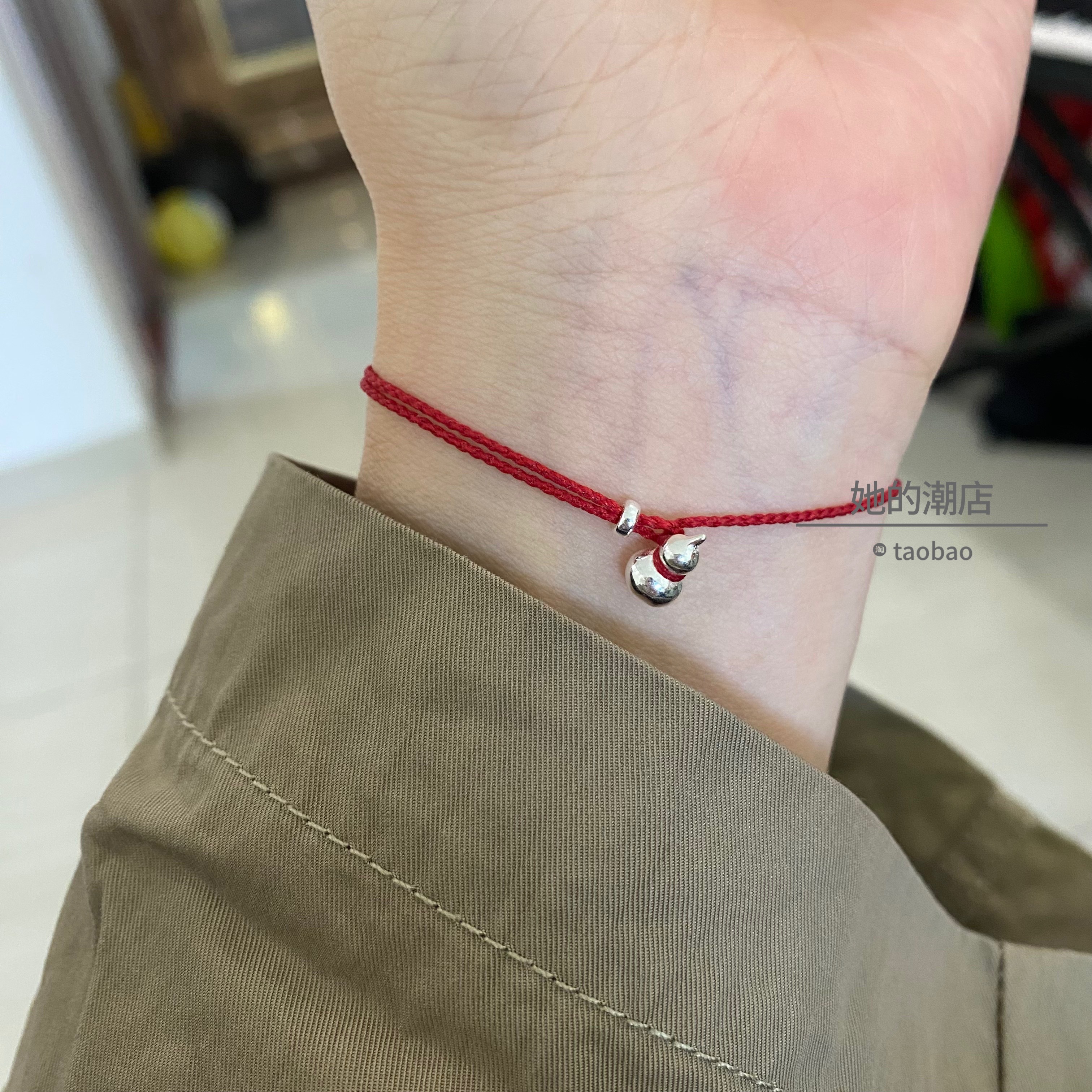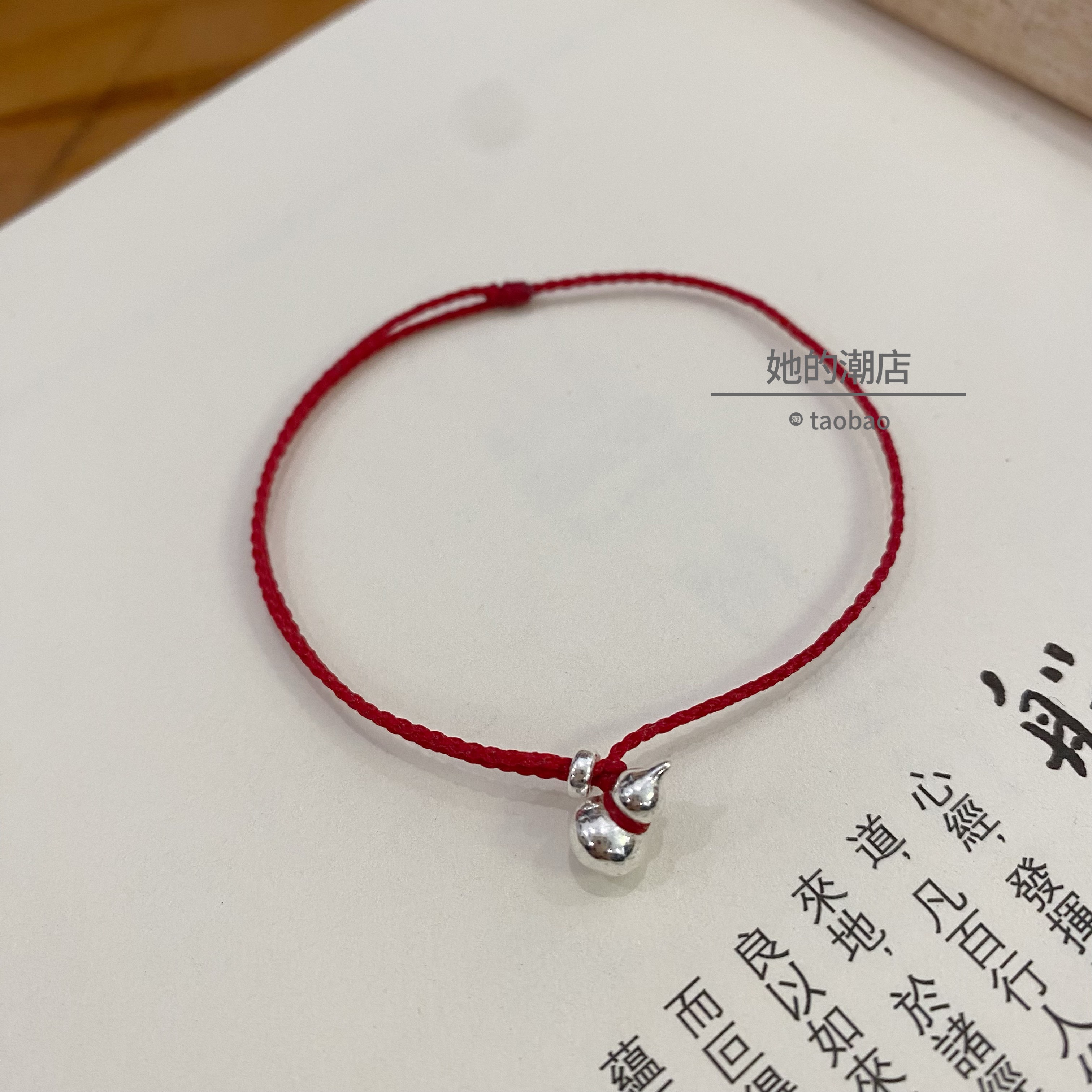 迷你实心925银小葫芦手绳纯手工编制四股平安结本命年超细红绳女