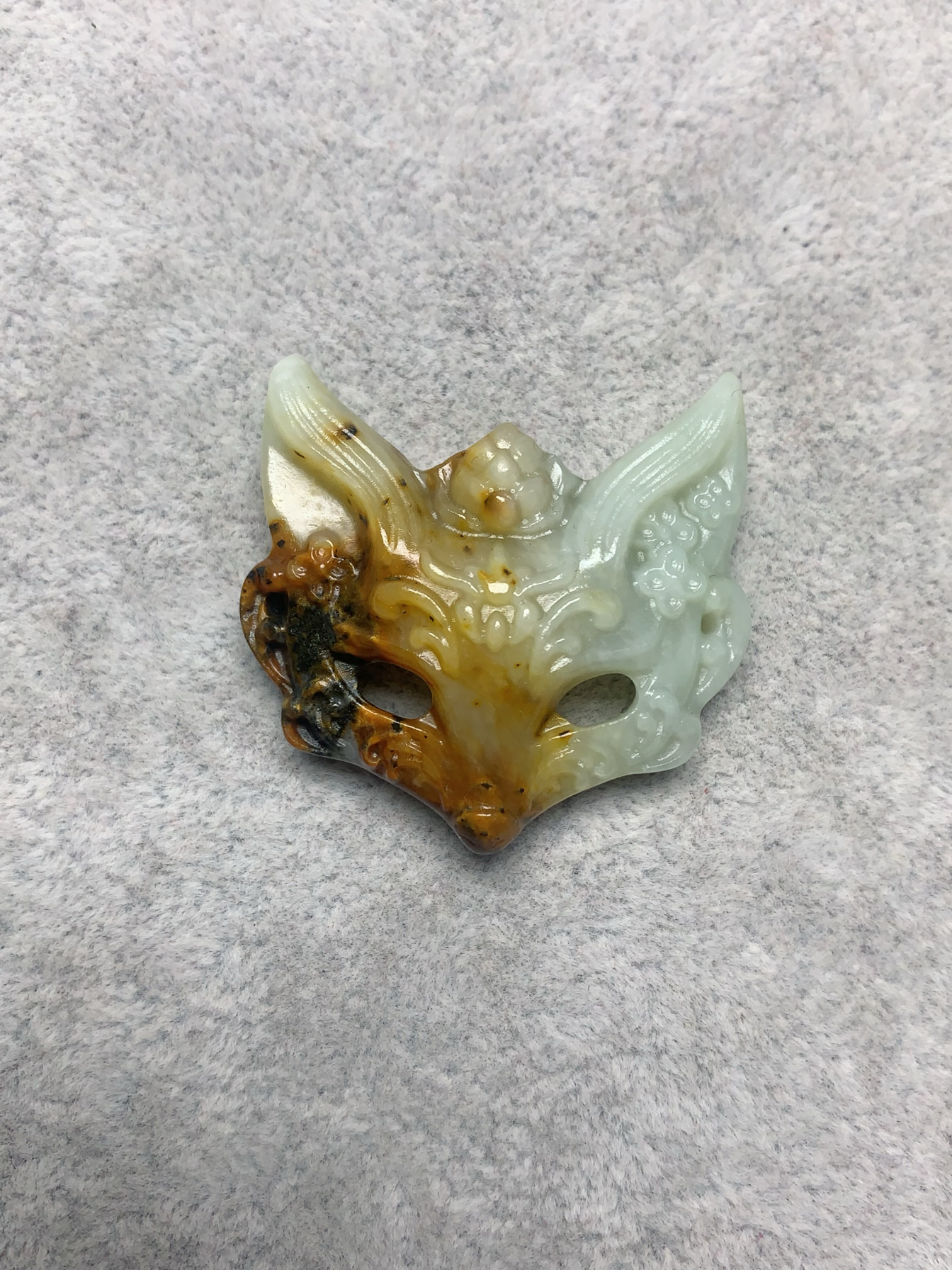 新岫玉花玉九尾狐面具花玉地球蓝狐狸面具双面镂手牌吊坠玉面狐狸