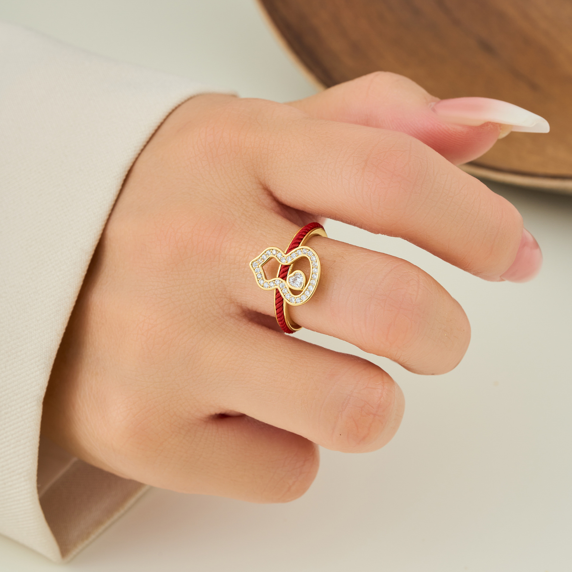 本命年红色物品平安好运红绳葫芦开口戒指福禄指环女可调节食指戒