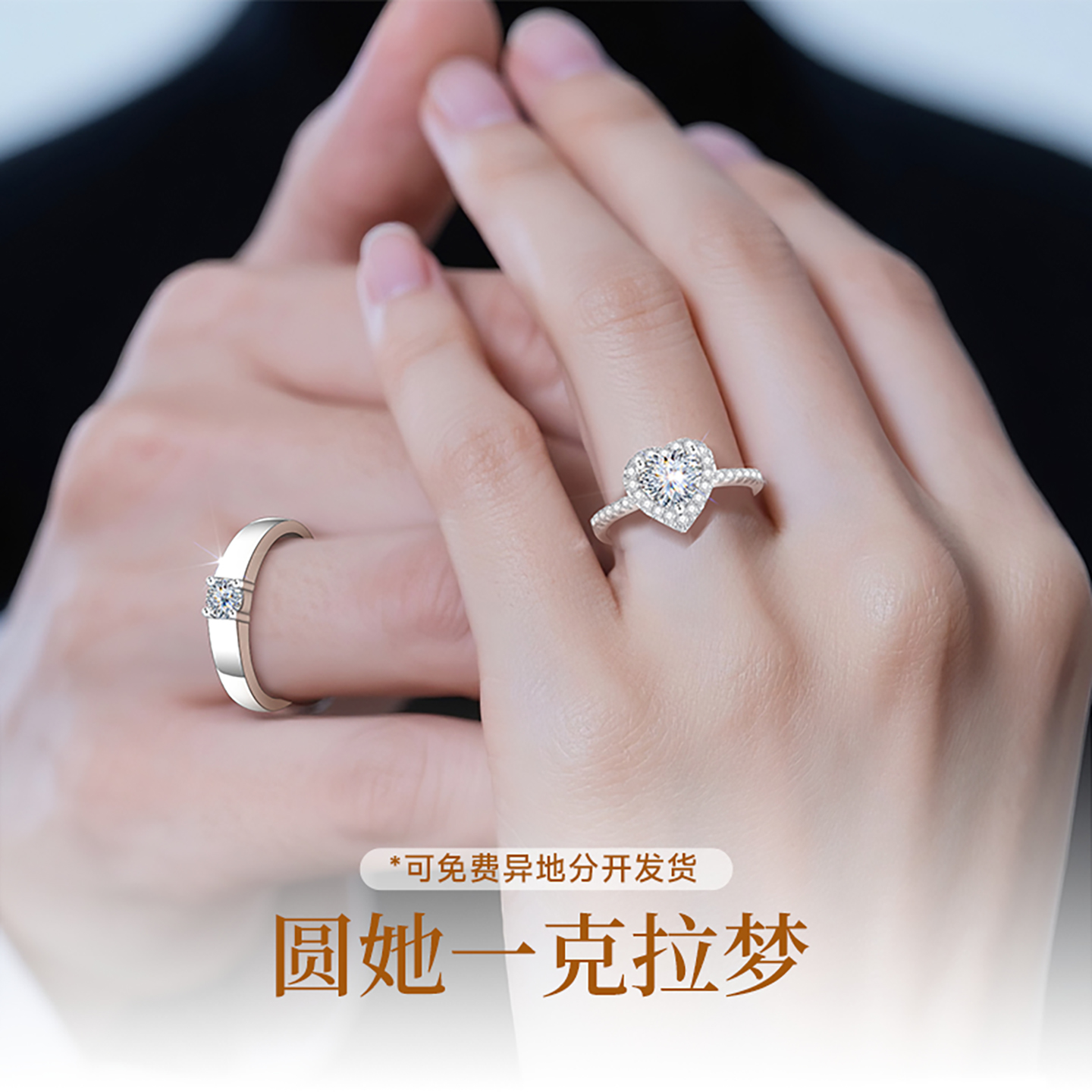 DR戒指情侣对戒999纯银一对婚戒对戒求婚结婚莫桑石钻石送男女友