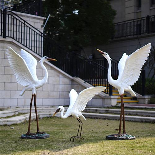 户外仿真白鹭摆件玻璃钢园林水景雕塑玻璃钢庭院假山草地鸟类装饰